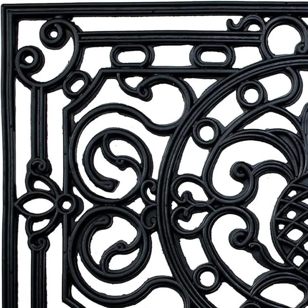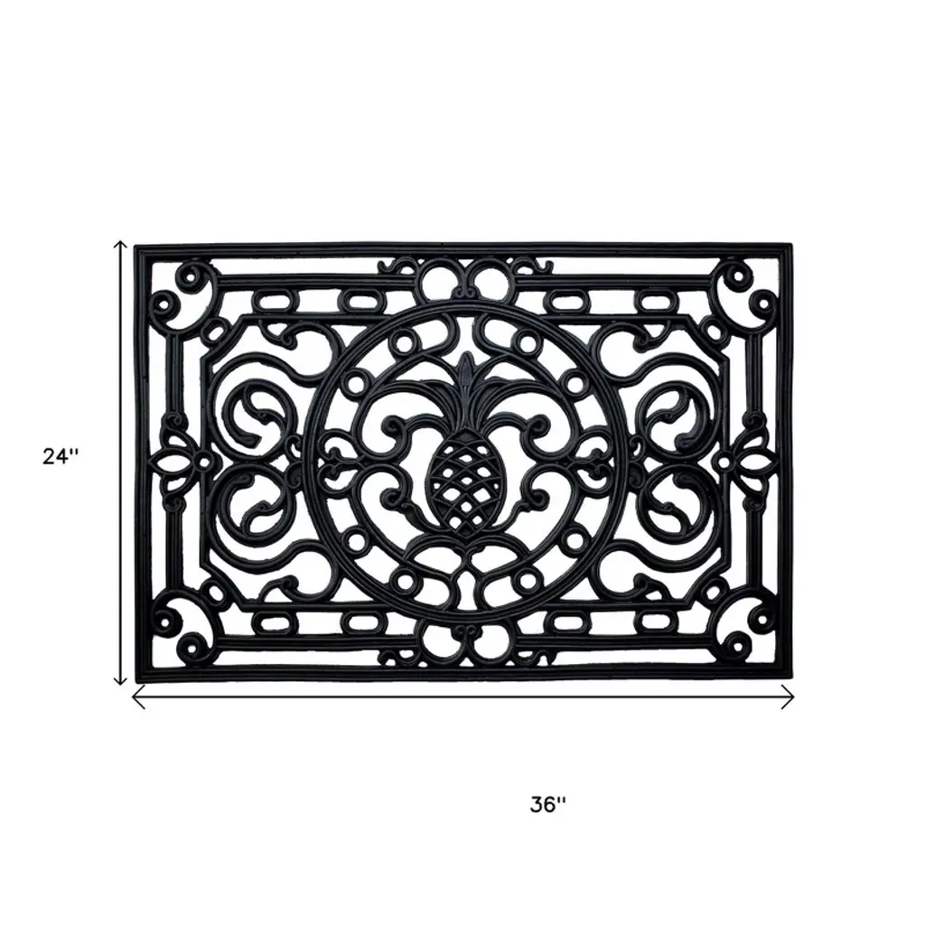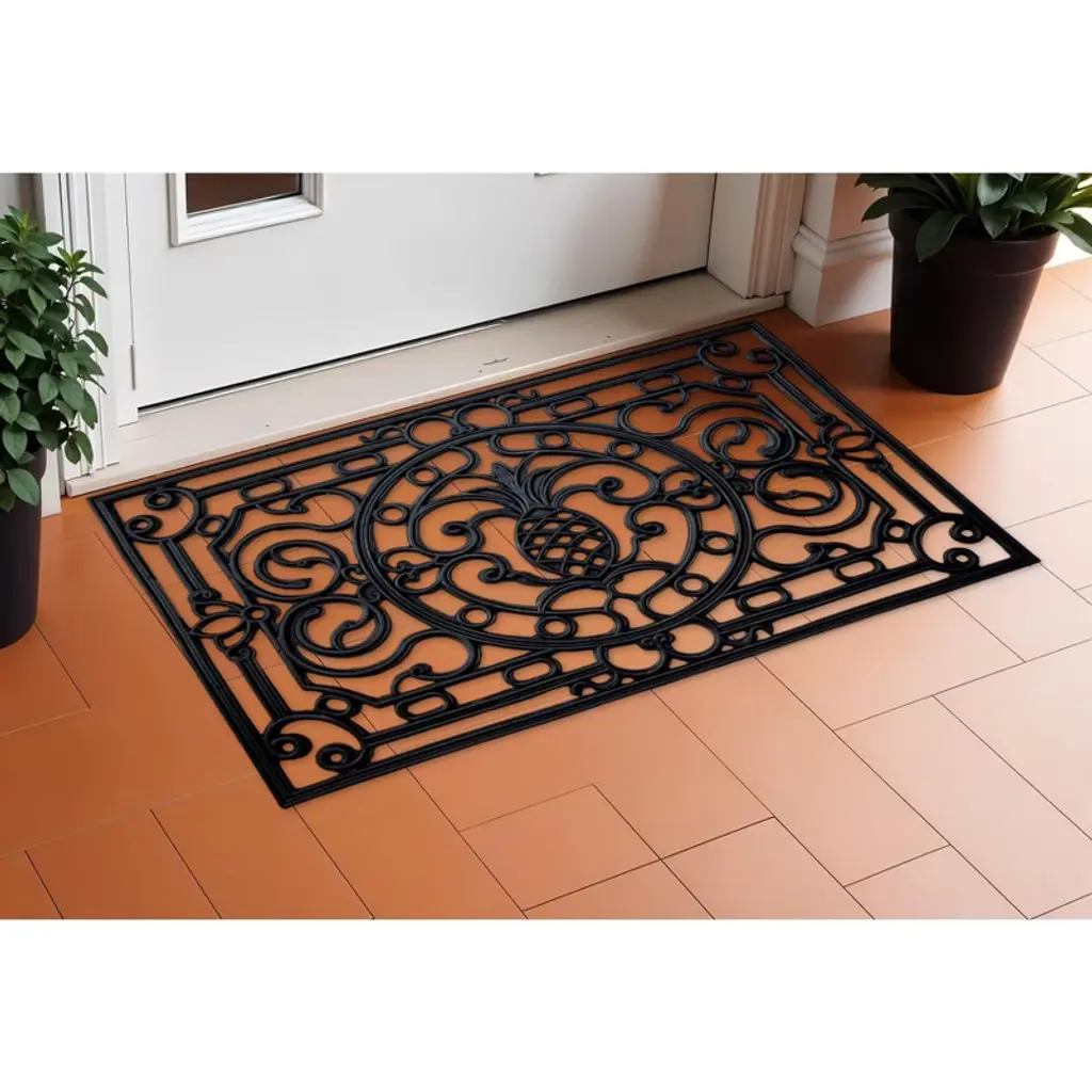 Homeroots 24" X 36" Black Pineapple And Scrollwork Outdoor Rubber Door Mat