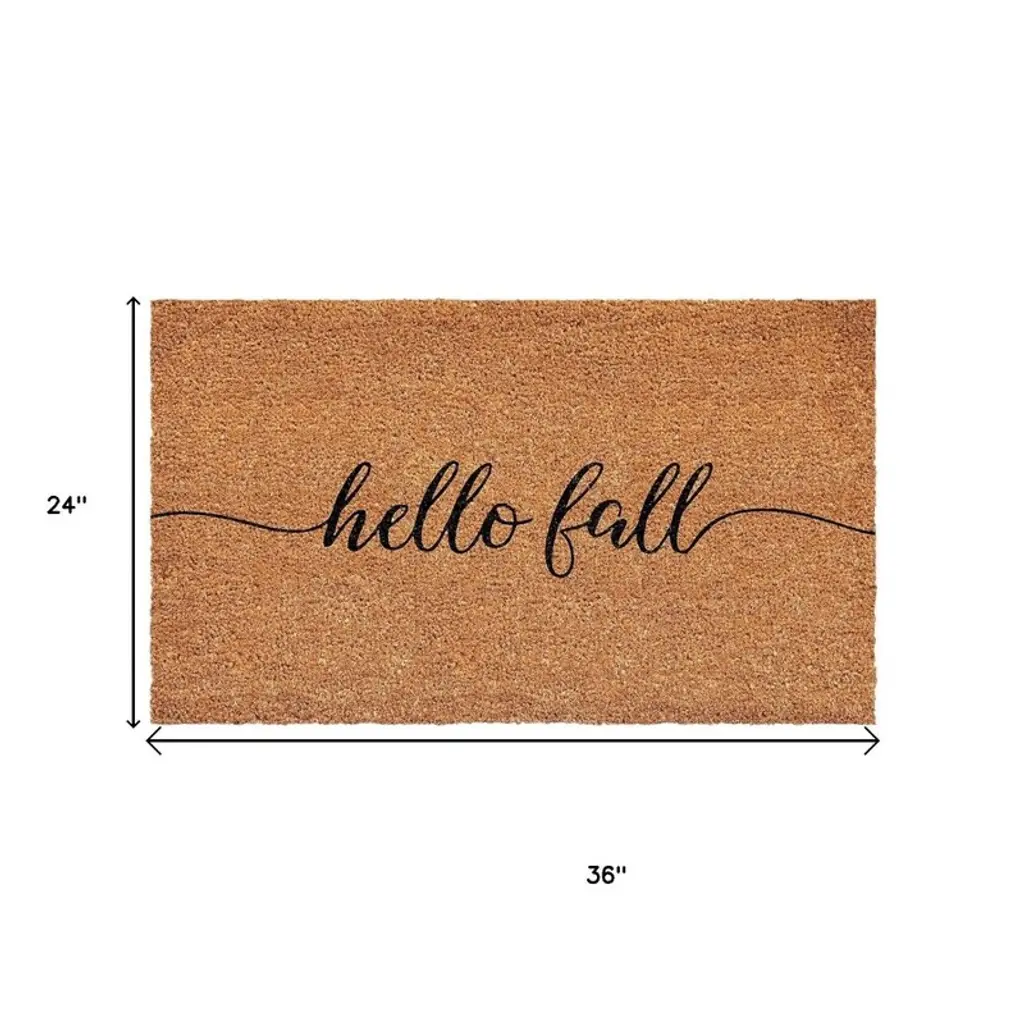 Homeroots 24" X 36" Brown And Natural Fall Hello Fall Outdoor Coir Door Mat