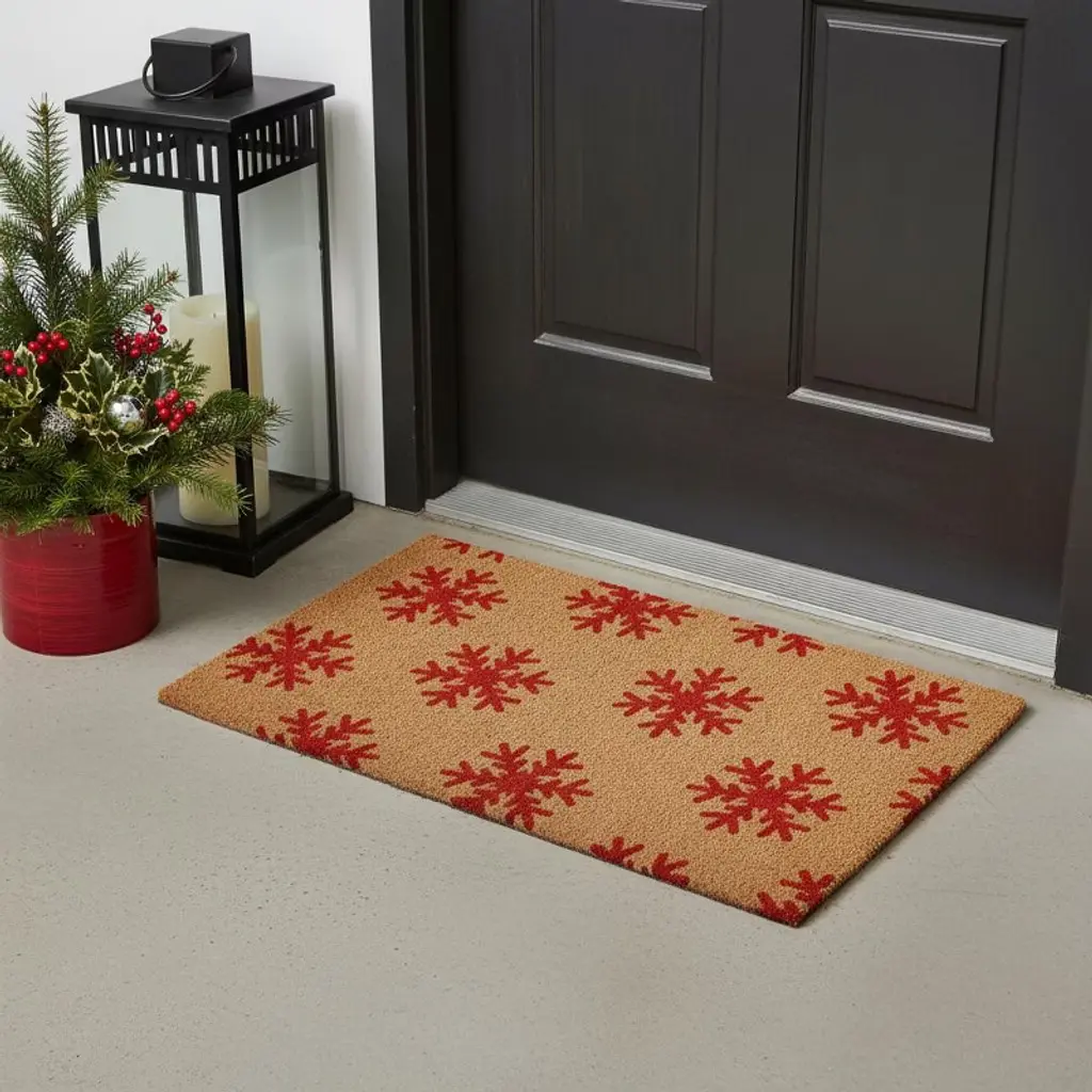 Known for it's extreme durability and ability to withstand heavy foot traffic, this 24-inch x 36-inch brown and red christmas snowflake outdoor coir door mat is an ideal option for the front door or entrance way of your home or business. Crafted from coconut husks, this mat is not only functional but is an an eco-friendly and visually appealing accessory. The naturally bristled texture of coir is an efficient way to clean dirt and mud from shoes and is easy to clean and maintain. Add this festive and decorative christmas mat to create a practical yet inviting welcome to all who enter. 24.00-inch h x 36.00-inch w x 0.60-inch d.