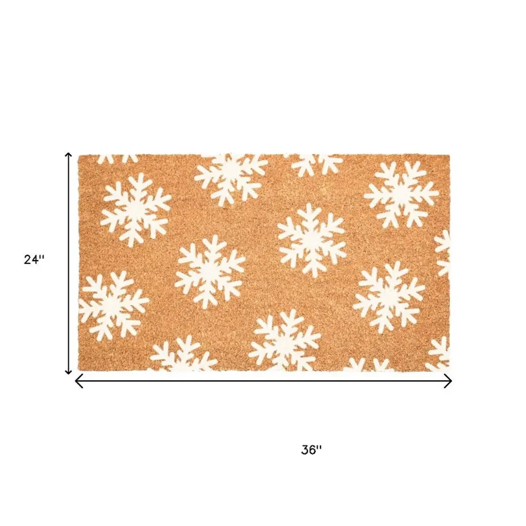 Homeroots 24" X 36" Brown And White Christmas Snowflake Outdoor Coir Door Mat