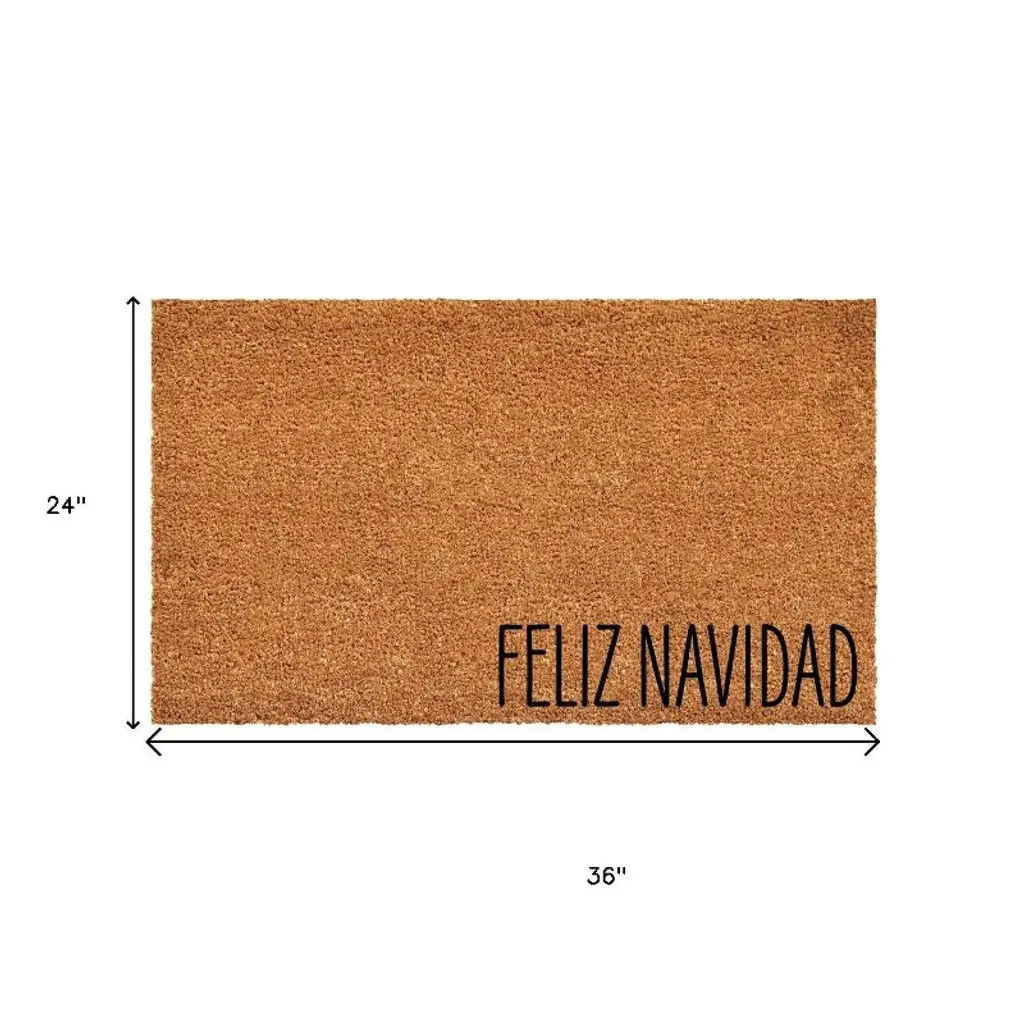 Homeroots 24" X 36" Brown Christmas Feliz Navidad Outdoor Coir Door Mat