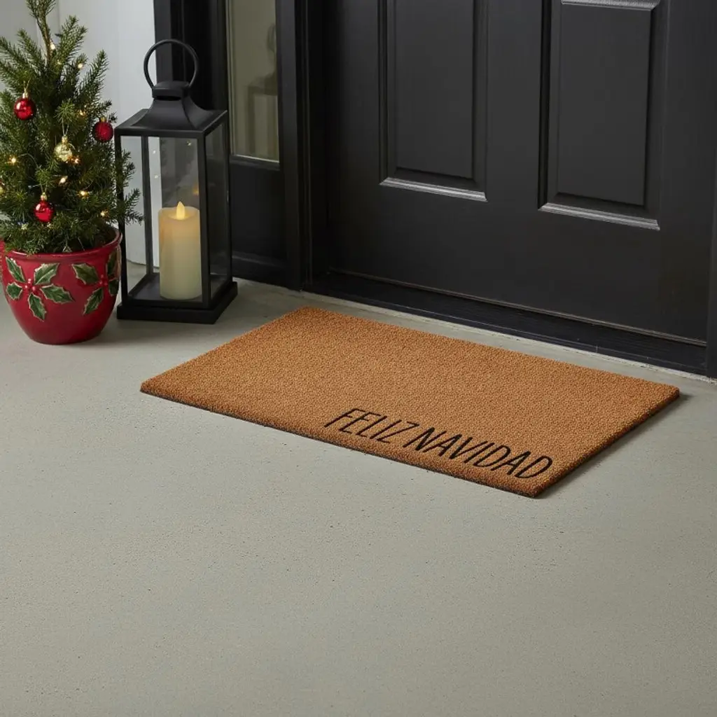 Known for it's extreme durability and ability to withstand heavy foot traffic, this 24-inch x 36-inch brown christmas feliz navidad outdoor coir door mat is an ideal option for the front door or entrance way of your home or business. Crafted from coconut husks, this mat is not only functional but is an an eco-friendly and visually appealing accessory. The naturally bristled texture of coir is an efficient way to clean dirt and mud from shoes and is easy to clean and maintain. Add this festive and decorative christmas mat to create a practical yet inviting welcome to all who enter. 24.00-inch h x 36.00-inch w x 0.60-inch d.
