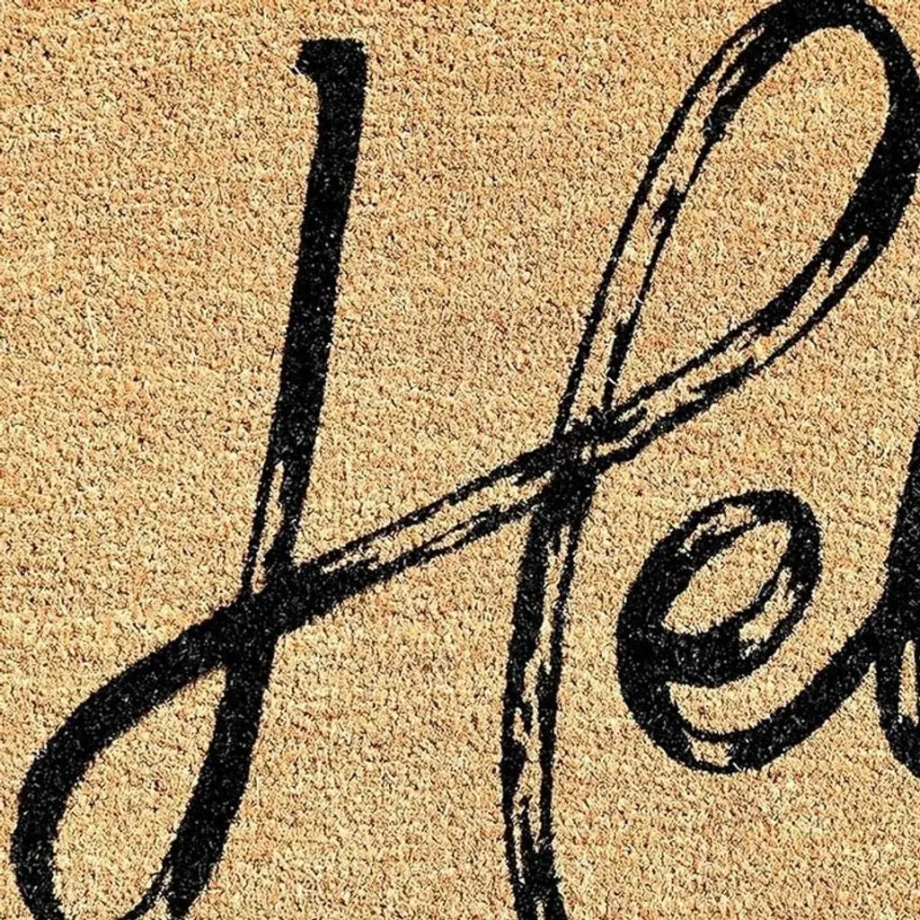 Known for it's extreme durability and ability to withstand heavy foot traffic, this 24-inch x 36-inch natural and black hello distressed outdoor coir door mat is an ideal option for the front door or entrance way of your home or business. Crafted from coconut husks, this mat is not only functional but is an an eco-friendly and visually appealing accessory. The naturally bristled texture of coir is an efficient way to clean dirt and mud from shoes and is easy to clean and maintain. Add this decorative mat to create a practical yet inviting welcome to all who enter. 24-inch h x 36-inch w x 0.6-inch d.