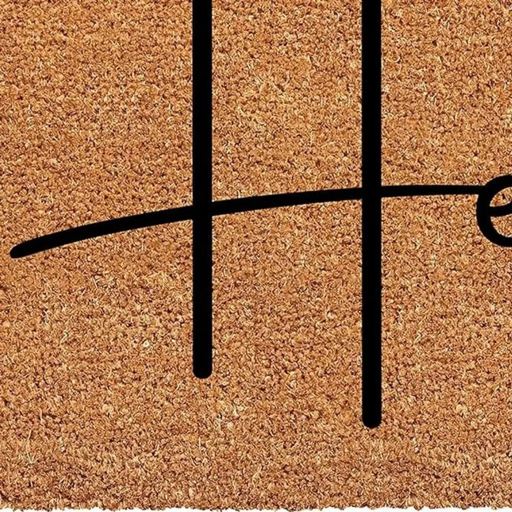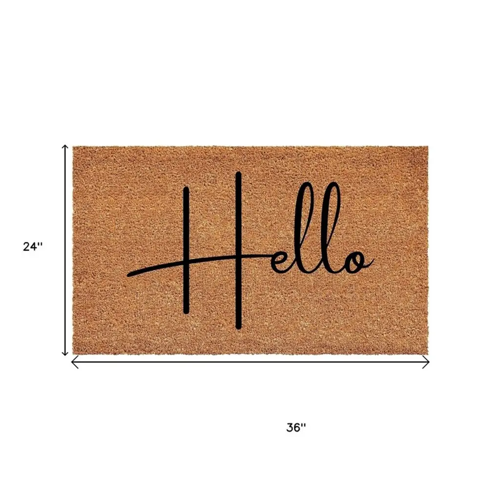 Homeroots 24" X 36" Natural And Black Mod Hello Outdoor Coir Door Mat