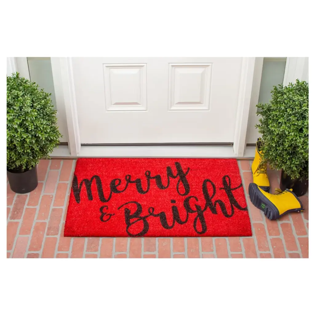 Known for it's extreme durability and ability to withstand heavy foot traffic, this 36-inch x 72-inch red and black Christmas merry and bright outdoor coir door mat is an ideal option for the front door or entrance way of your home or business. Crafted from coconut husks, this mat is not only functional but is an an eco-friendly and visually appealing accessory. The naturally bristled texture of coir is an efficient way to clean dirt and mud from shoes and is easy to clean and maintain. Add this festive and decorative Christmas mat to create a practical yet inviting welcome to all who enter. 36.00-inch h x 72.00-inch w x 0.60-inch d.