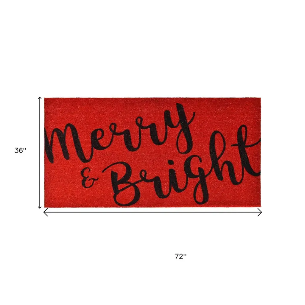 Homeroots 36" X 72" Red And Black Christmas Merry And Bright Outdoor Coir Door Mat