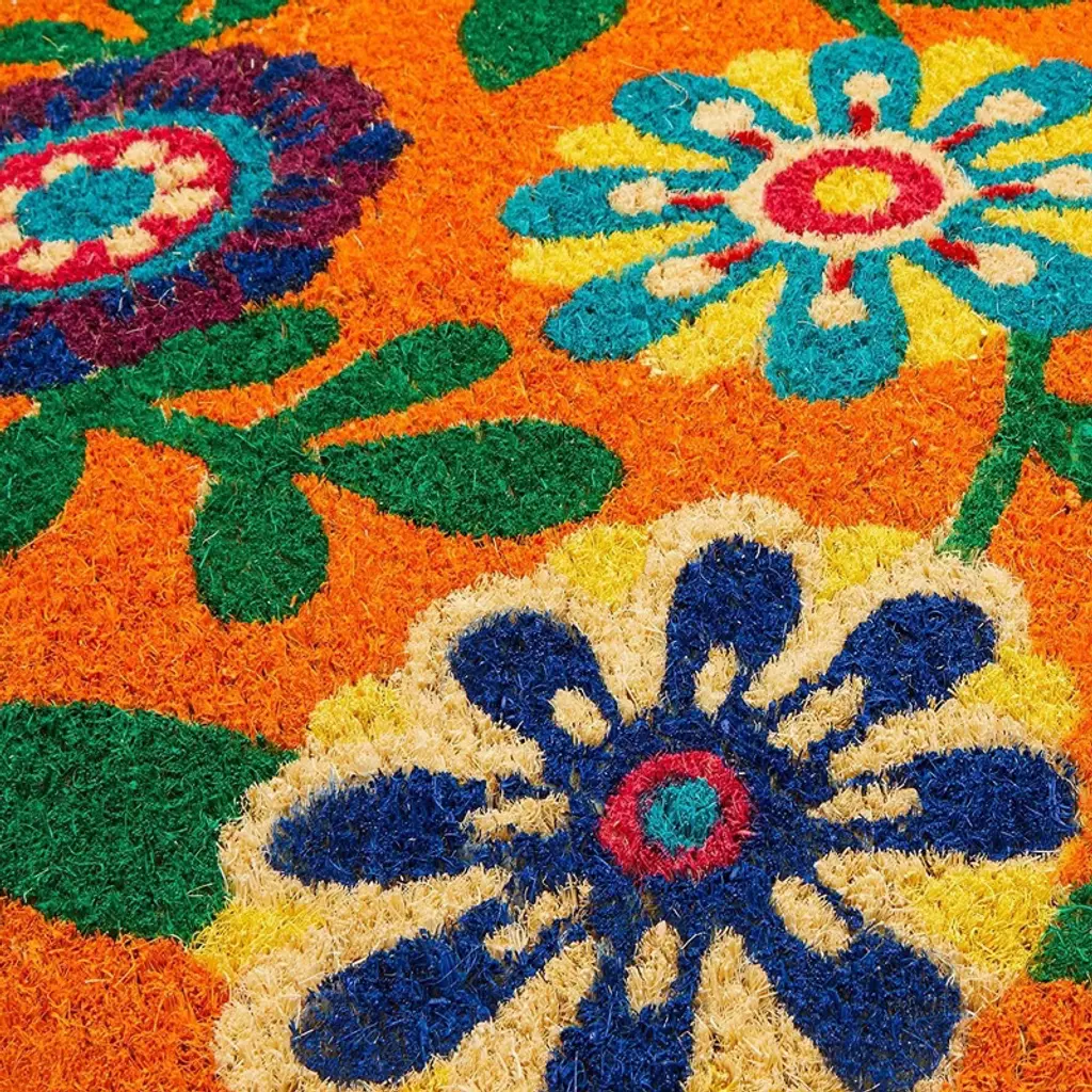 Enhance your entryway with a stunning floral coir doormat, welcoming guests with charm and style for any occasion. This colorful doormat adds a touch of sophistication to various spaces, whether near the front door, kitchen, laundry room, garden, backyard, or patio. Crafted from natural coir fiber and featuring a durable black PVC backing, this outdoor mat is designed for long-lasting use both indoors and outdoors. Its sturdy construction ensures durability, making it ideal for high-traffic areas. Measuring approximately 17 x 30 inches, this flower doormat is the perfect size for any space, providing a warm and inviting welcome. Included in the package is one non-slip backing welcome coir doormat, combining functionality with aesthetics to elevate your home's entrance. Personalize your doorway and make a lasting impression with this lovely floral outdoor mat, designed to greet guests with elegance and charm.