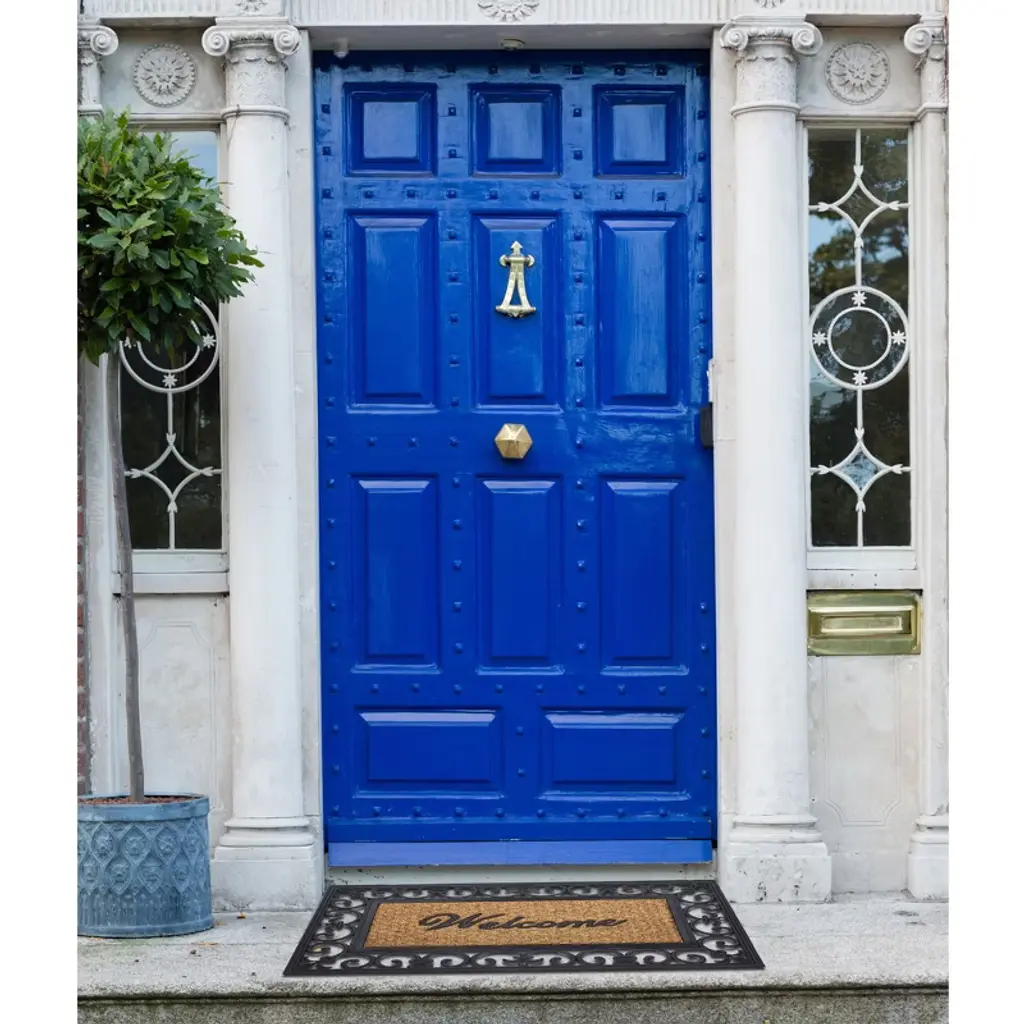 Introducing the Kate Aurora 18"x30" Rectangular Fleur De Lis Outdoor Heavy Duty Rubber & Coir Skid Resistant Welcome Door Mat in Black, a stylish and functional addition to your doorstep. Crafted with durability and style in mind, this welcome mat offers a blend of elegance and practicality, enhancing the entrance of your home. Featuring a classic Fleur De Lis design in black, this welcome mat adds a touch of sophistication to your doorstep while providing a warm invitation to guests. The heavy-duty rubber and coir construction ensure durability and longevity, making it suitable for outdoor use in all weather conditions. Measuring 18"x30" in size, this rectangular welcome mat fits perfectly at your front door, providing ample space for wiping shoes and trapping dirt before entering your home. The skid-resistant backing keeps the mat securely in place, preventing slips and trips for added safety. Crafted with high-quality materials, this welcome mat is designed to withstand daily use and outdoor elements, making it a practical and stylish choice for your entryway. Easy to clean, simply shake, sweep, or hose down the mat as needed to keep it looking fresh and inviting. Welcome guests to your home with the timeless elegance of the Kate Aurora 18"x30" Rectangular Fleur De Lis Outdoor Heavy Duty Rubber & Coir Skid Resistant Welcome Door Mat in Black. With its stylish design, durable construction, and functional features, it's the perfect finishing touch for your entryway.