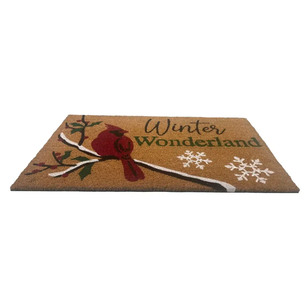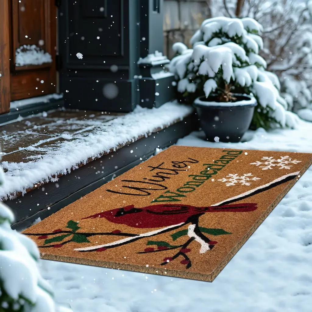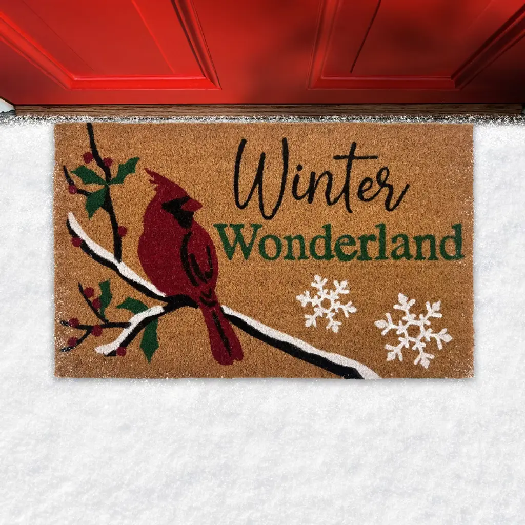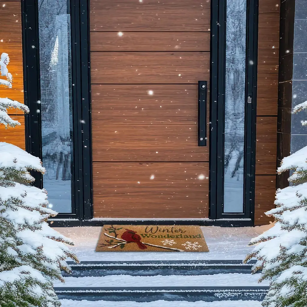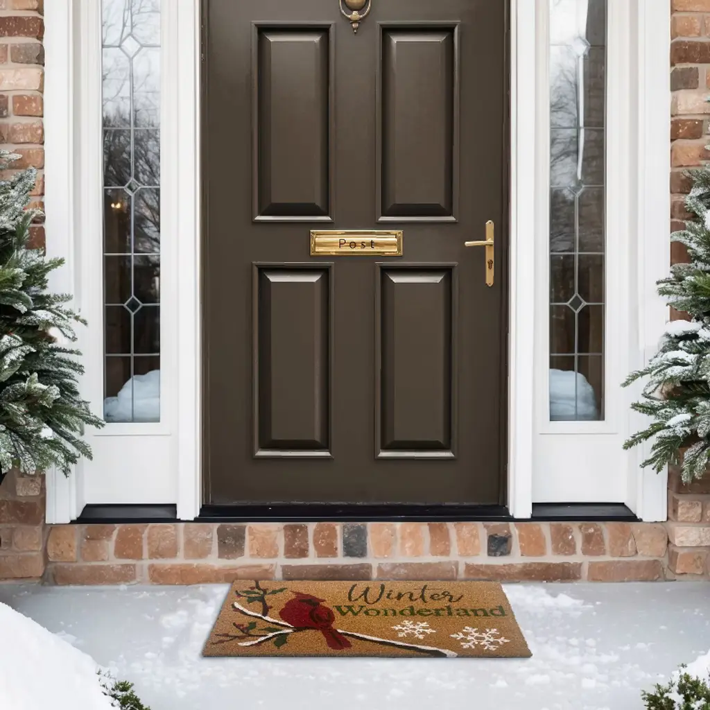 Welcome the holiday season in charming style with the Kate Aurora Christmas Cardinal & Snowflakes Coir Bristled Outdoor Holiday Welcome Mat. Featuring a vibrant red cardinal perched among delicate white snowflakes, this mat brings a touch of winter wonder and cheerful color to your doorstep. The festive design is perfect for greeting guests throughout the holiday season and adding a cozy, seasonal accent to your home’s exterior decor. Measuring 18 inches by 30 inches, this mat fits most standard entryways and offers ample space for wiping shoes before entering your home. The durable coir bristled surface naturally scrapes away dirt, snow, and debris, helping to keep your floors clean. Its sturdy, non-slip backing keeps the mat securely in place, even in high-traffic areas, while the thick bristles are designed to stand up to the wear and tear of winter weather. Made from natural, weather-resistant materials, this mat maintains its vibrant design and effective performance all season long. Maintenance is simple — just shake it out, sweep, or rinse with a hose to keep it looking fresh and inviting. Whether you’re decorating for a holiday gathering, searching for a thoughtful seasonal gift, or simply adding a festive touch to your porch or patio, the Kate Aurora Christmas Cardinal & Snowflakes Coir Bristled Welcome Mat delivers both function and holiday charm. Greet friends and family with the warmth of the season, right at your doorstep.