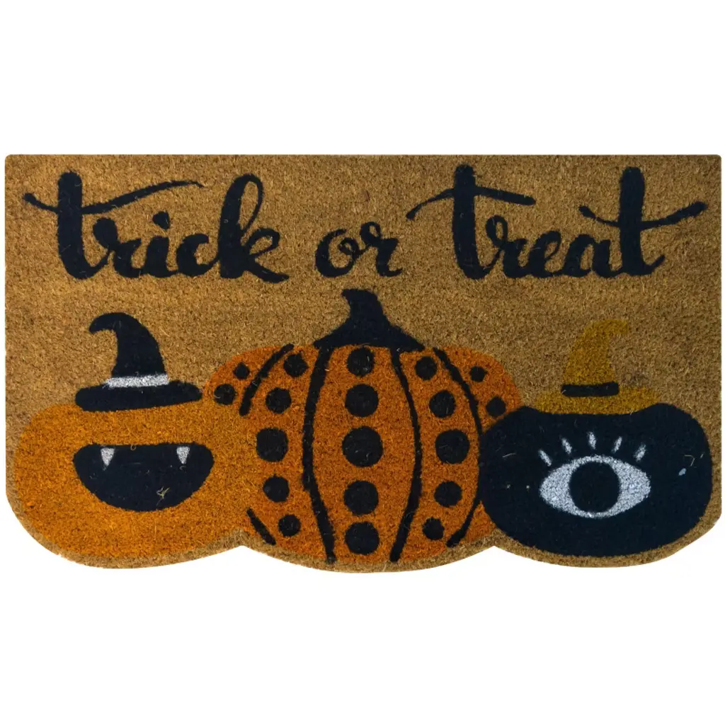 Celebrate the season with this 18x30 inch outdoor welcome mat, designed to bring charm, warmth, and Halloween character to your doorstep. Crafted from durable natural coir bristles, it withstands heavy foot traffic while scraping away dirt, mud, and debris, keeping your home fresh and inviting. The fade-resistant design ensures long-lasting color vibrancy and style. This outdoor mat embraces the playful and spooky spirit of Halloween with designs that may include jack-o’-lanterns, witches, haunted houses, or goblins. Perfect for trick-or-treat night, costume parties, or simply showing off your holiday spirit, it sets the stage for festive fun. The bold graphics bring character to your doorstep while offering practical functionality. The sturdy backing helps keep the mat securely in place while preventing slips, making it both safe and reliable indoors or outdoors. Whether placed at your front door, porch, patio, or entryway, it blends practicality with seasonal decor appeal. Simple to maintain, just shake off or brush clean for easy care. Thoughtfully designed to balance durability and beauty, it makes a wonderful gift for neighbors, friends, or anyone who loves holiday decorating. Add this mat to your seasonal collection to instantly elevate your curb appeal and spread festive cheer throughout the season.