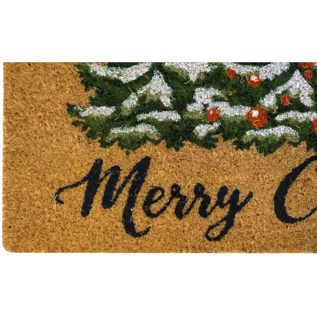 Kate Aurora Merry Christmas Trees Evergreen Bristled Coir Outdoor Welcome Mat - 18"x30"