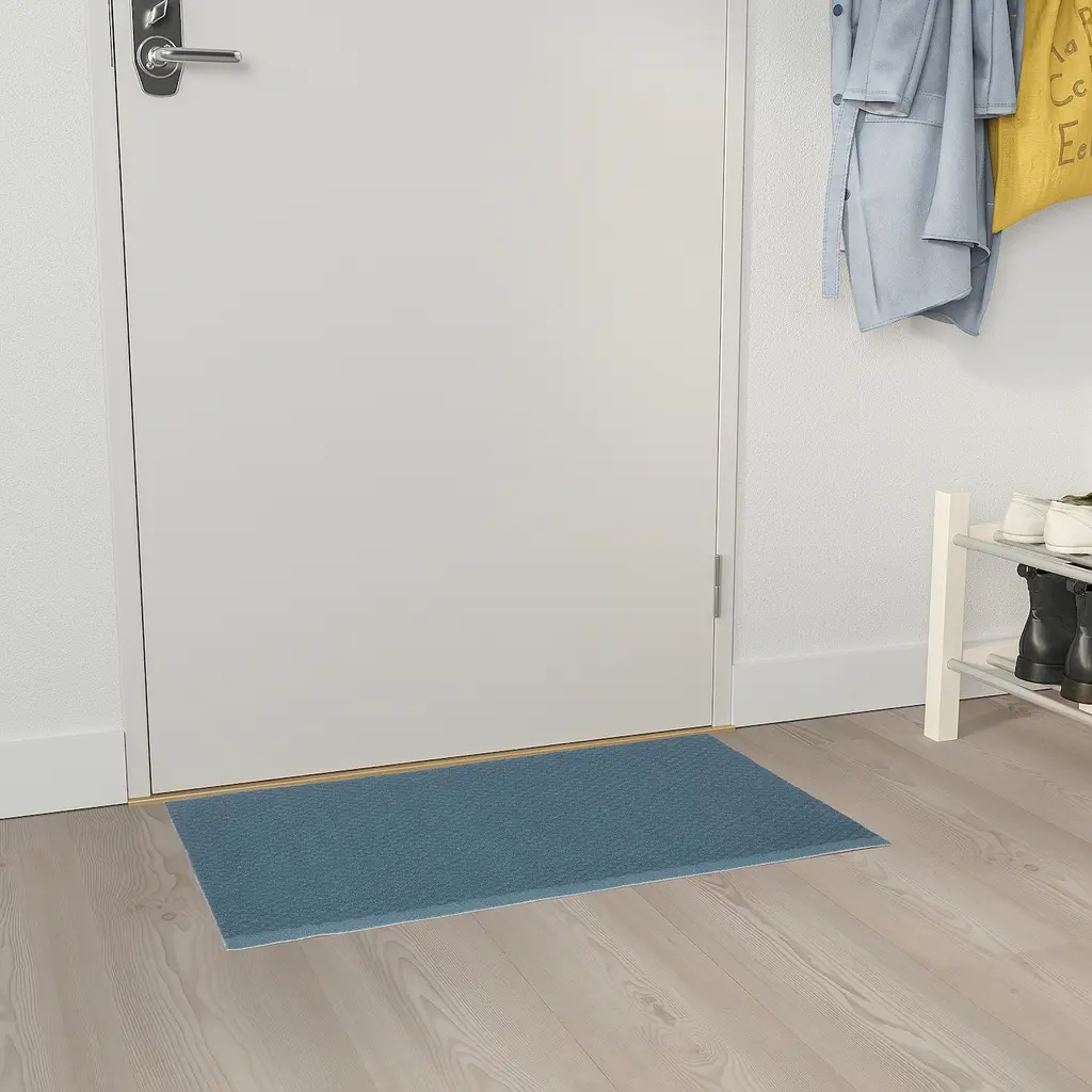 KLAMPENBORG Door mat, indoor - blue 1 ' 8 "x2 ' 7 ". Add character to the entrance of your home by choosing a door mat with a pattern or different colors. Catches grit and dirt which are dragged in from outside and prevents it from getting into your home. Only for indoor use.