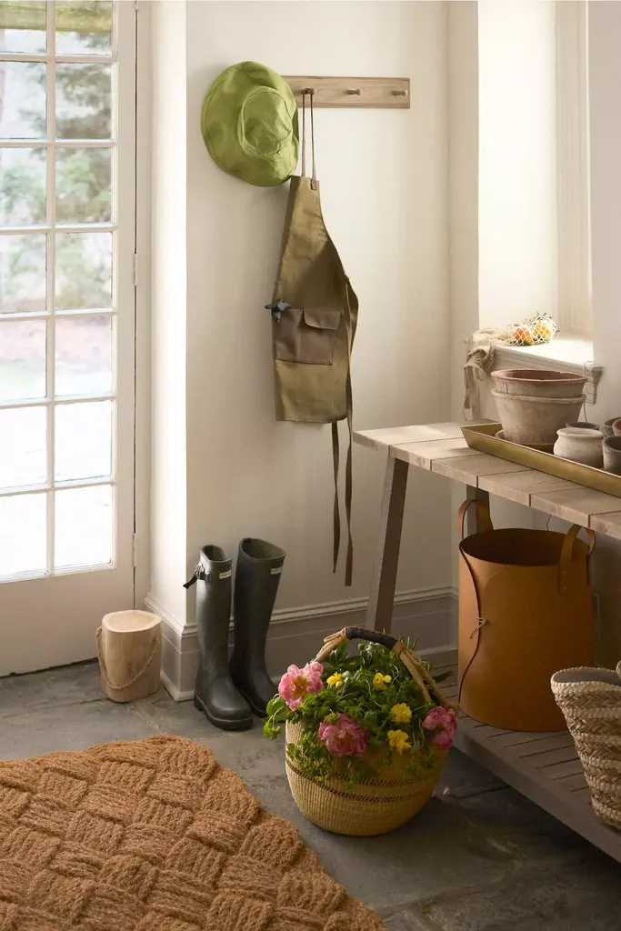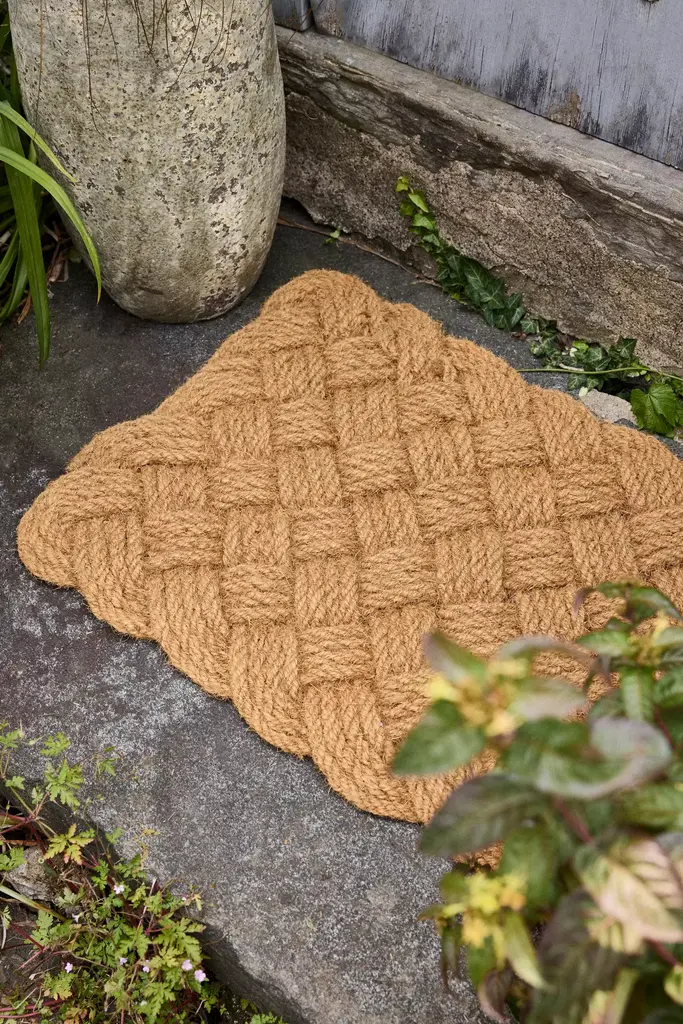 A practical addition to mudrooms, patios, and porches, this woven mat is made from rugged, coir fiber that catches dirt before it enters the house.
