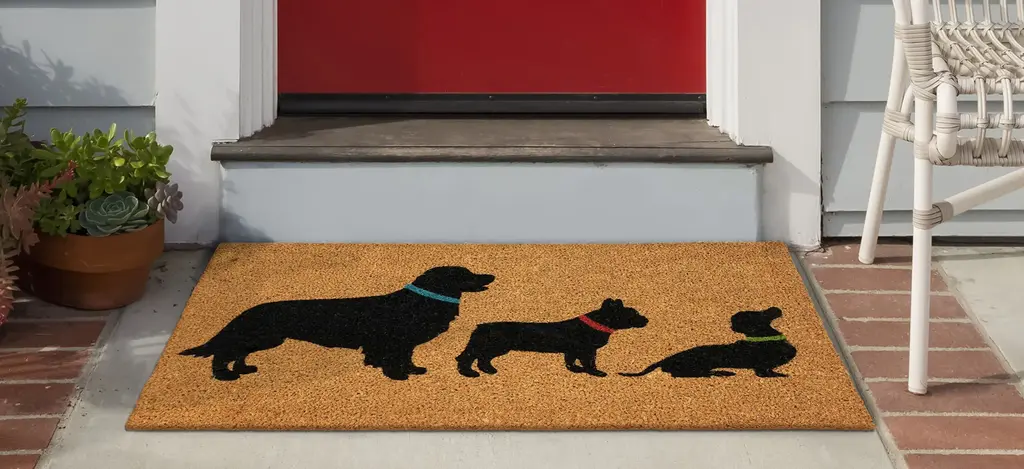 The Best in Show mat featuring man's best friend, evoking fun and whimsy that shows your fun side and your love for your dog. This coir utility mat is both stylish and practical, in natural. Natura coir doormats are durable and beautiful. Crafted from 100% coir which is an all-natural material known for its strength. Coir is eco-friendly, made from natural fibers which are extracted from the outer shell of a coconut known for its strength and durability. Natura coir mats feature a durable vinyl back and a stiff, durable natural coir front perfect for wiping shoes before entering the home, keeping it tidy. They are available in a wide variety of designs ranging from classic and inspirational to nautical patterns. Dyes saturate the fibers for long-lasting color.
