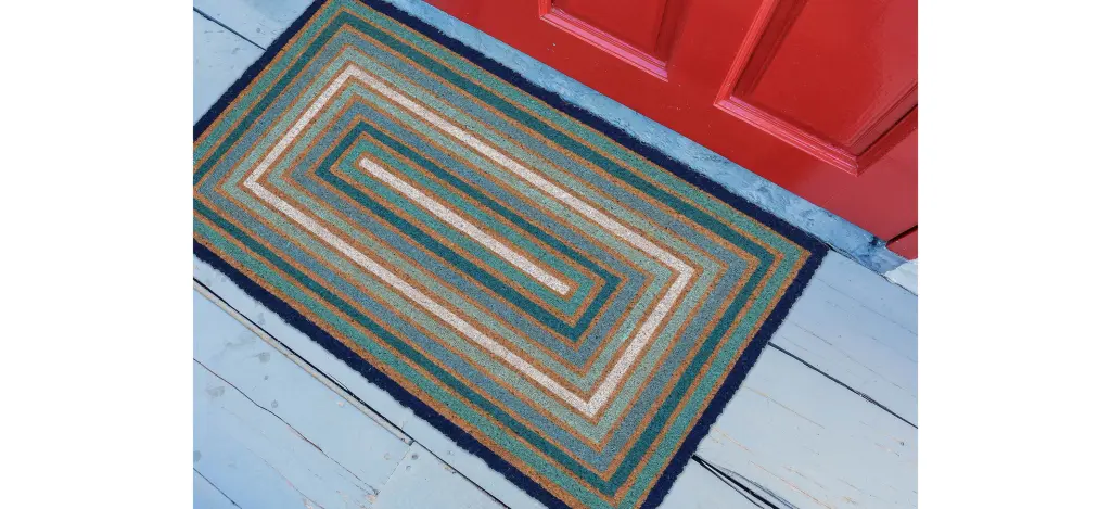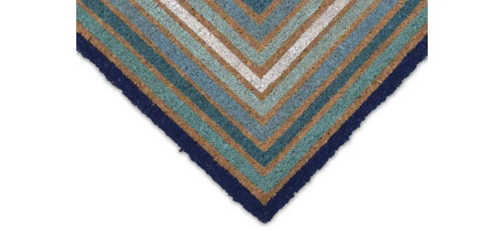 Our Boxes mat features a geometric design adding a sleek, contemporary look to your doorstep. This coir utility mat is both stylish and practical, in blue. Natura coir doormats are durable and beautiful. Crafted from 100% coir which is an all-natural material known for its strength. Coir is eco-friendly, made from natural fibers which are extracted from the outer shell of a coconut known for its strength and durability. Natura coir mats feature a durable vinyl back and a stiff, durable natural coir front perfect for wiping shoes before entering the home, keeping it tidy. They are available in a wide variety of designs ranging from classic and inspirational to nautical patterns. Dyes saturate the fibers for long-lasting color.