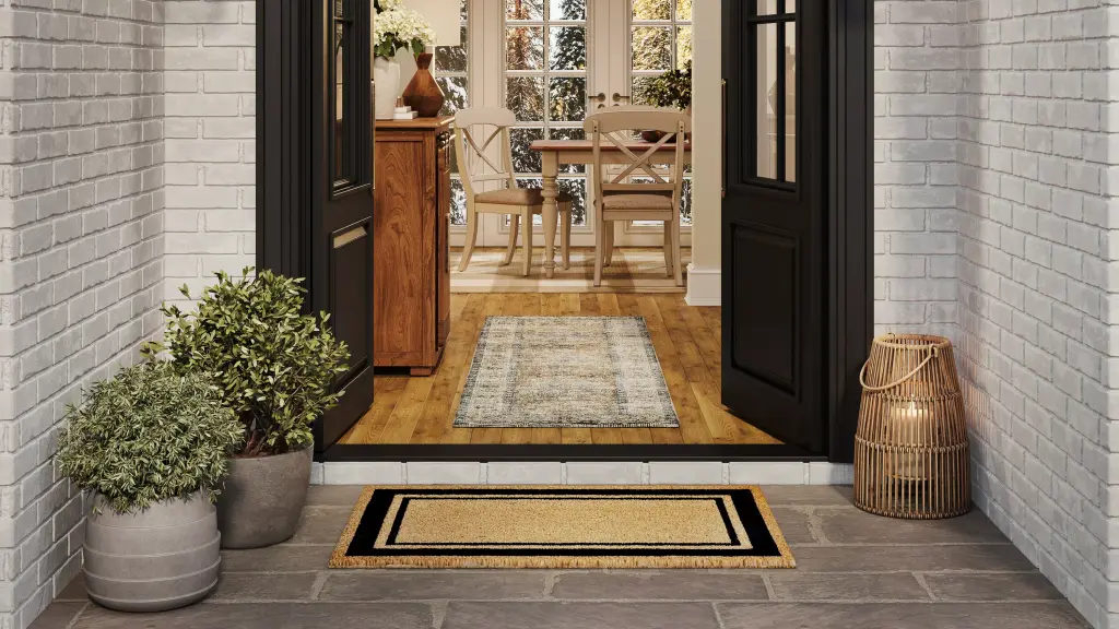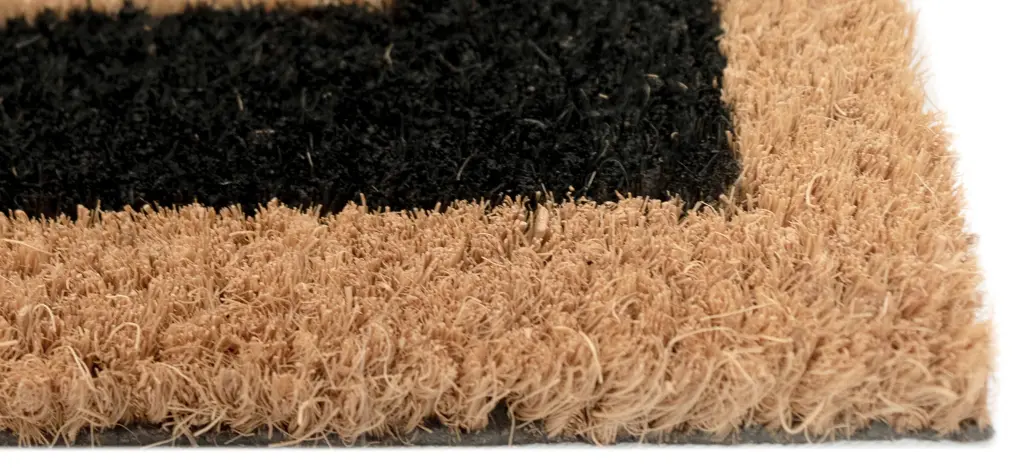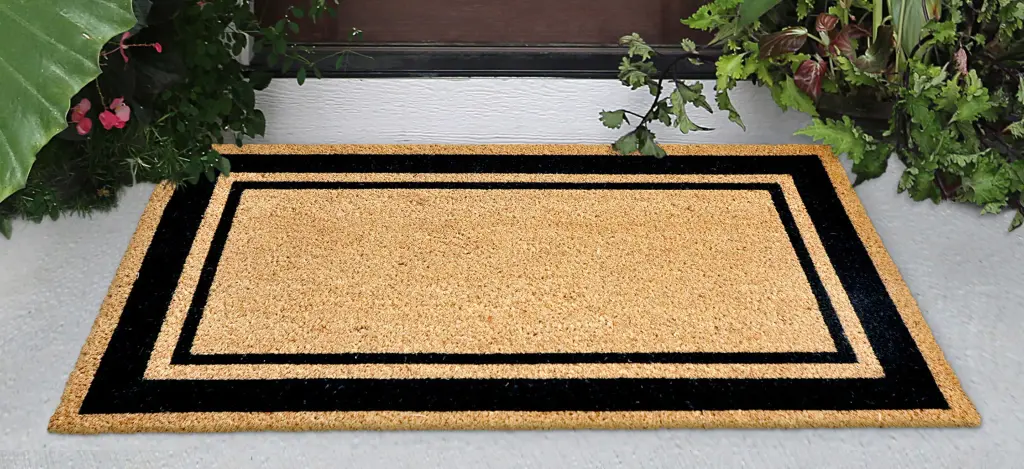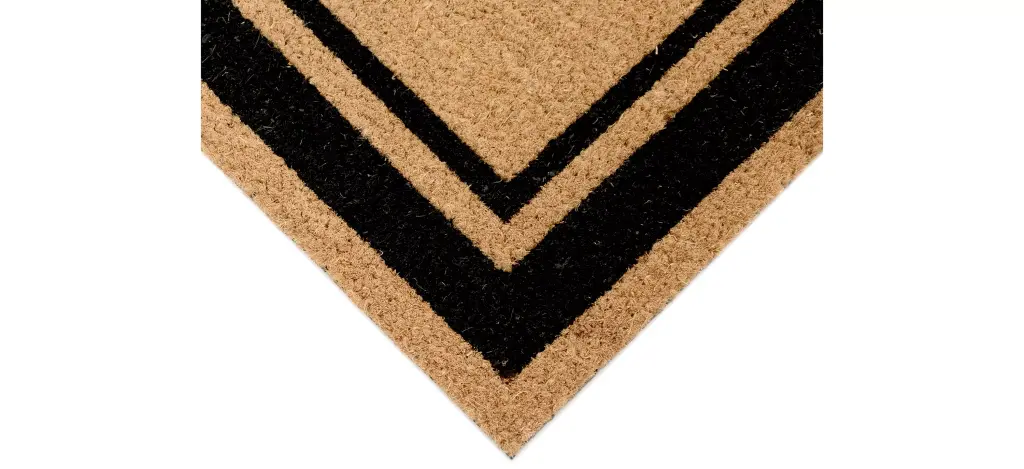 Our Double Border mat is both classic and sophisticated, adding a stylish way to enhance your entryway, in black. Natura coir doormats are durable and beautiful. Crafted from 100% coir which is an all-natural material known for its strength. Coir is eco-friendly, made from natural fibers which are extracted from the outer shell of a coconut known for its strength and durability. Natura coir mats feature a durable vinyl back and a stiff, durable natural coir front perfect for wiping shoes before entering the home, keeping it tidy. They are available in a wide variety of designs ranging from classic and inspirational to nautical patterns. Dyes saturate the fibers for long-lasting color.