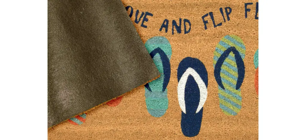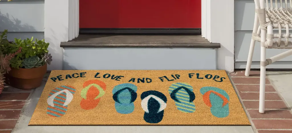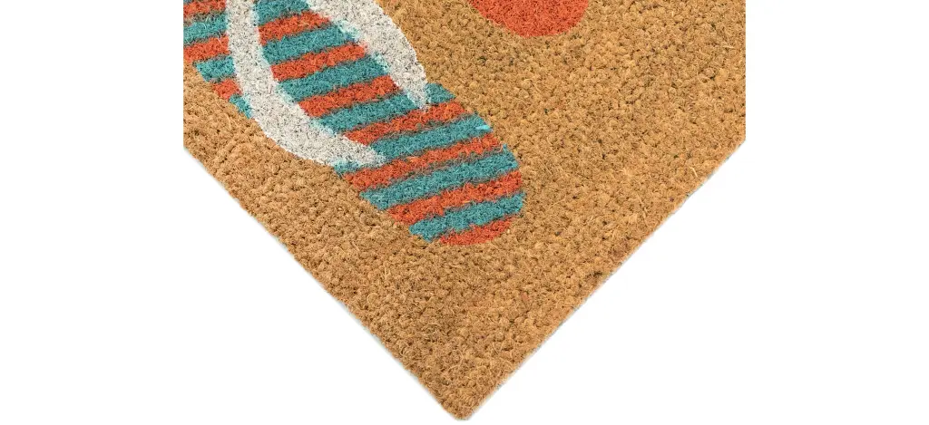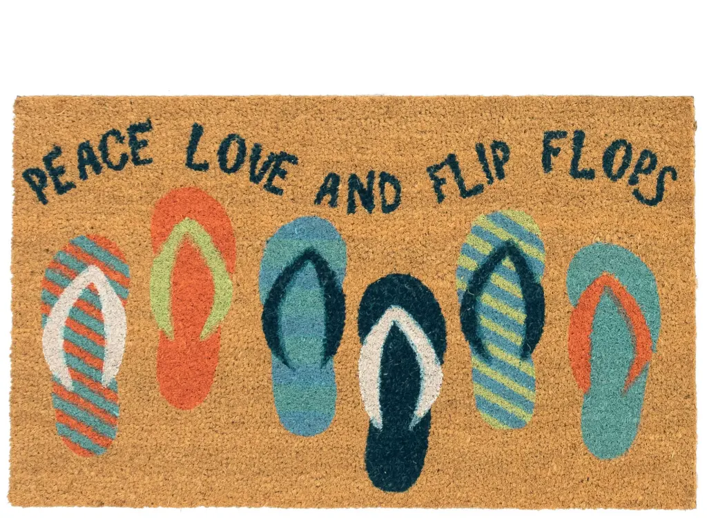 Our Flip Flops mat will add a fun, coastal vibe to your doorstep. This coir utility mat is both stylish and practical, in blue. Natura coir doormats are durable and beautiful. Crafted from 100% coir which is an all-natural material known for its strength. Coir is eco-friendly, made from natural fibers which are extracted from the outer shell of a coconut known for its strength and durability. Natura coir mats feature a durable vinyl back and a stiff, durable natural coir front perfect for wiping shoes before entering the home, keeping it tidy. They are available in a wide variety of designs ranging from classic and inspirational to nautical patterns. Dyes saturate the fibers for long-lasting color.