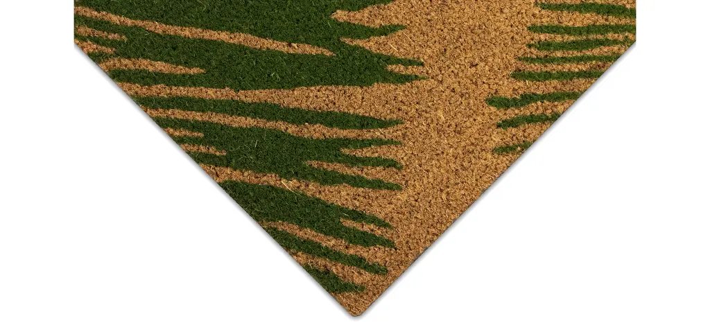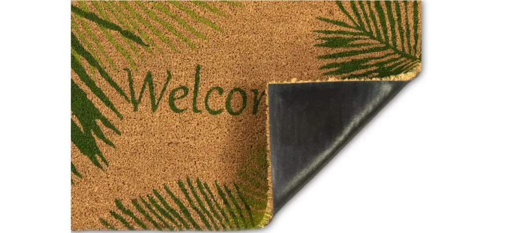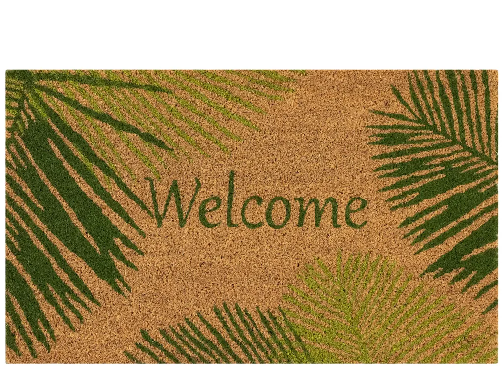 Our Palm Border mat features a sophisticated tropical design with a hint of color. Coir utility mats are practical yet add character and personality to your entryway, in green. Natura coir doormats are durable and beautiful. Crafted from 100% coir which is an all-natural material known for its strength. Coir is eco-friendly, made from natural fibers which are extracted from the outer shell of a coconut known for its strength and durability. Natura coir mats feature a durable vinyl back and a stiff, durable natural coir front perfect for wiping shoes before entering the home, keeping it tidy. They are available in a wide variety of designs ranging from classic and inspirational to nautical patterns. Dyes saturate the fibers for long-lasting color.