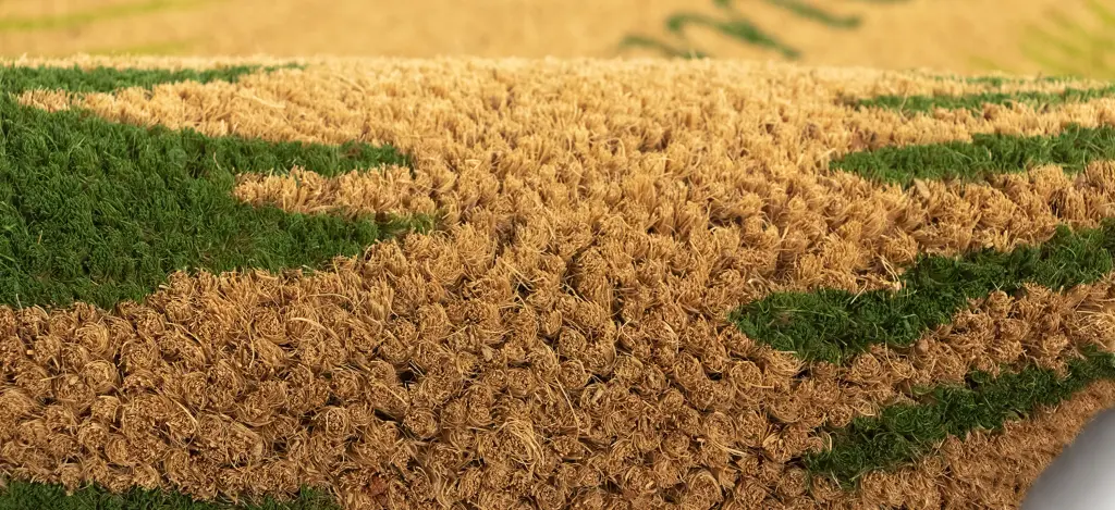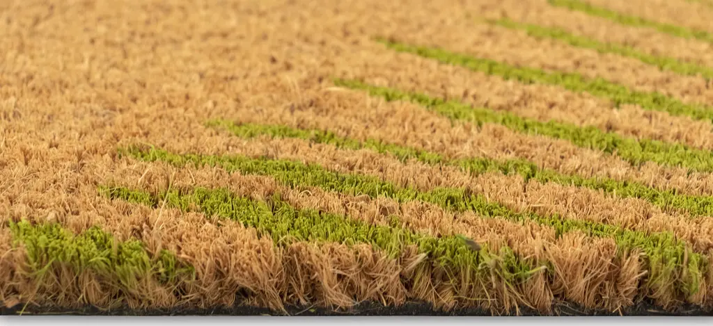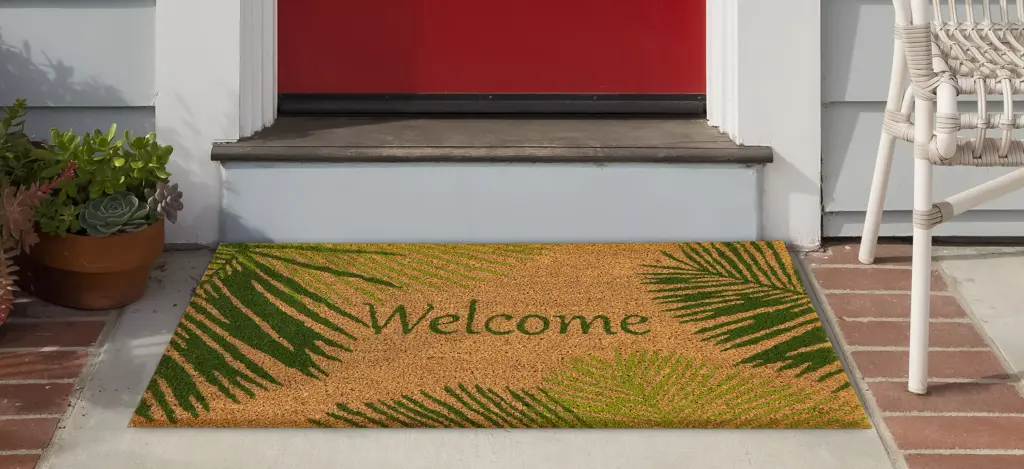 Our Palm Border mat features a sophisticated tropical design with a hint of color. Coir utility mats are practical yet add character and personality to your entryway, in green. Natura coir doormats are durable and beautiful. Crafted from 100% coir which is an all-natural material known for its strength. Coir is eco-friendly, made from natural fibers which are extracted from the outer shell of a coconut known for its strength and durability. Natura coir mats feature a durable vinyl back and a stiff, durable natural coir front perfect for wiping shoes before entering the home, keeping it tidy. They are available in a wide variety of designs ranging from classic and inspirational to nautical patterns. Dyes saturate the fibers for long-lasting color.
