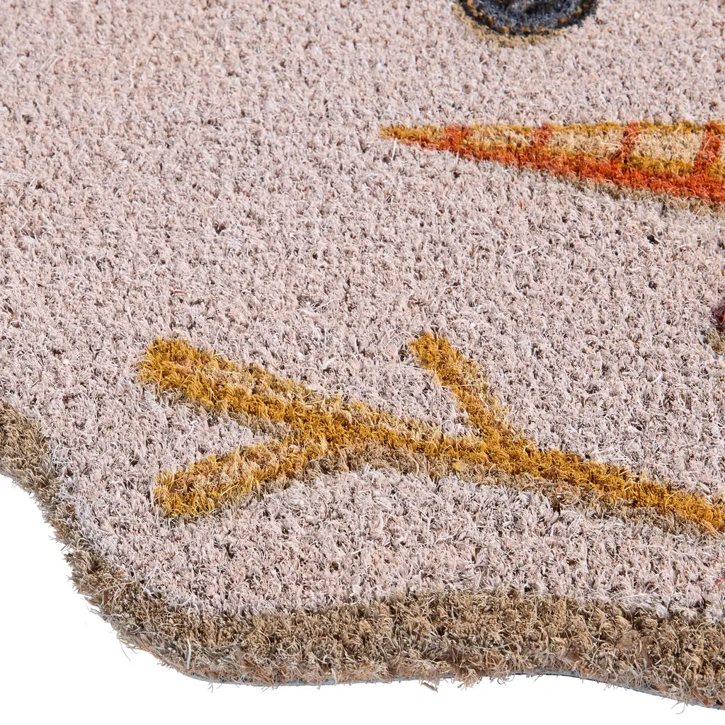 Featuring the whimsical shape of a melted snowman, this fun coir doormat is still smiling with cute button eyes, carrot nose, and jolly twig arms. A short king for sure, this cutout snowman is made of durable coconut-husk fibers to maintain its puddle-inspired shape - this cheeky Christmas mascot is built strong to stay merry and bright. This clever seasonal doormat is a festive invitation to enjoy the snowman-melting warmth of your holiday home.
