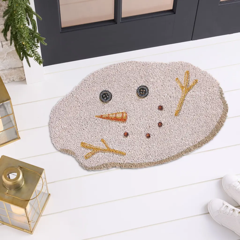 Melted Snowman Shaped Holiday Coir Doormat