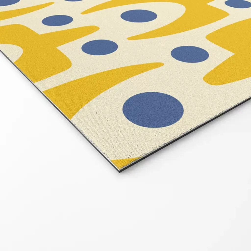 Mid Century Modern Abstract Pattern 641 Googie Yellow And Blue Welcome Mat