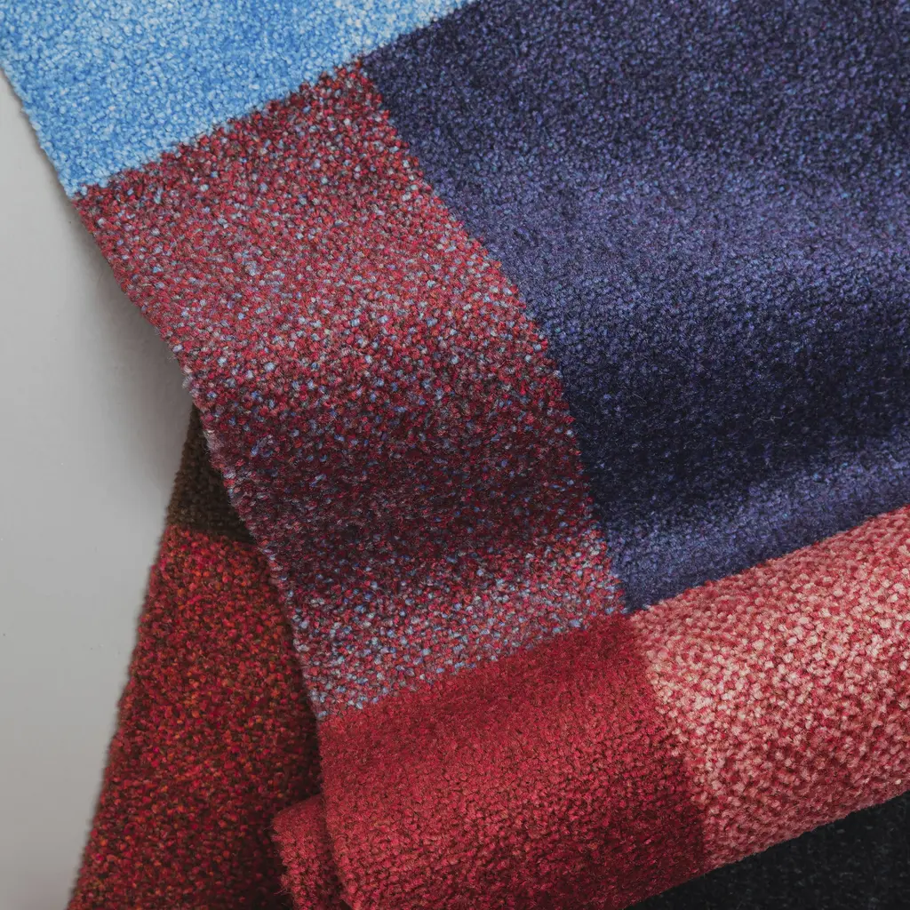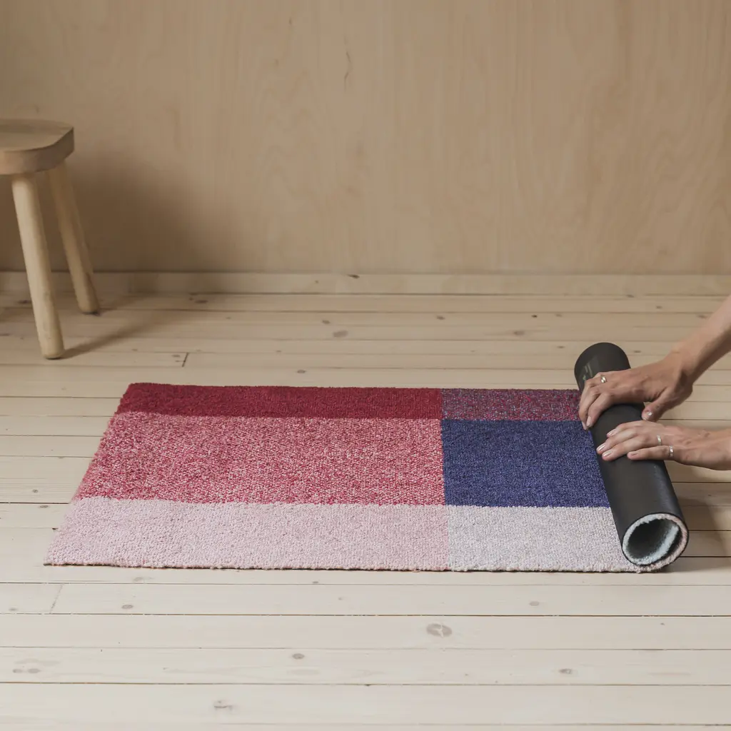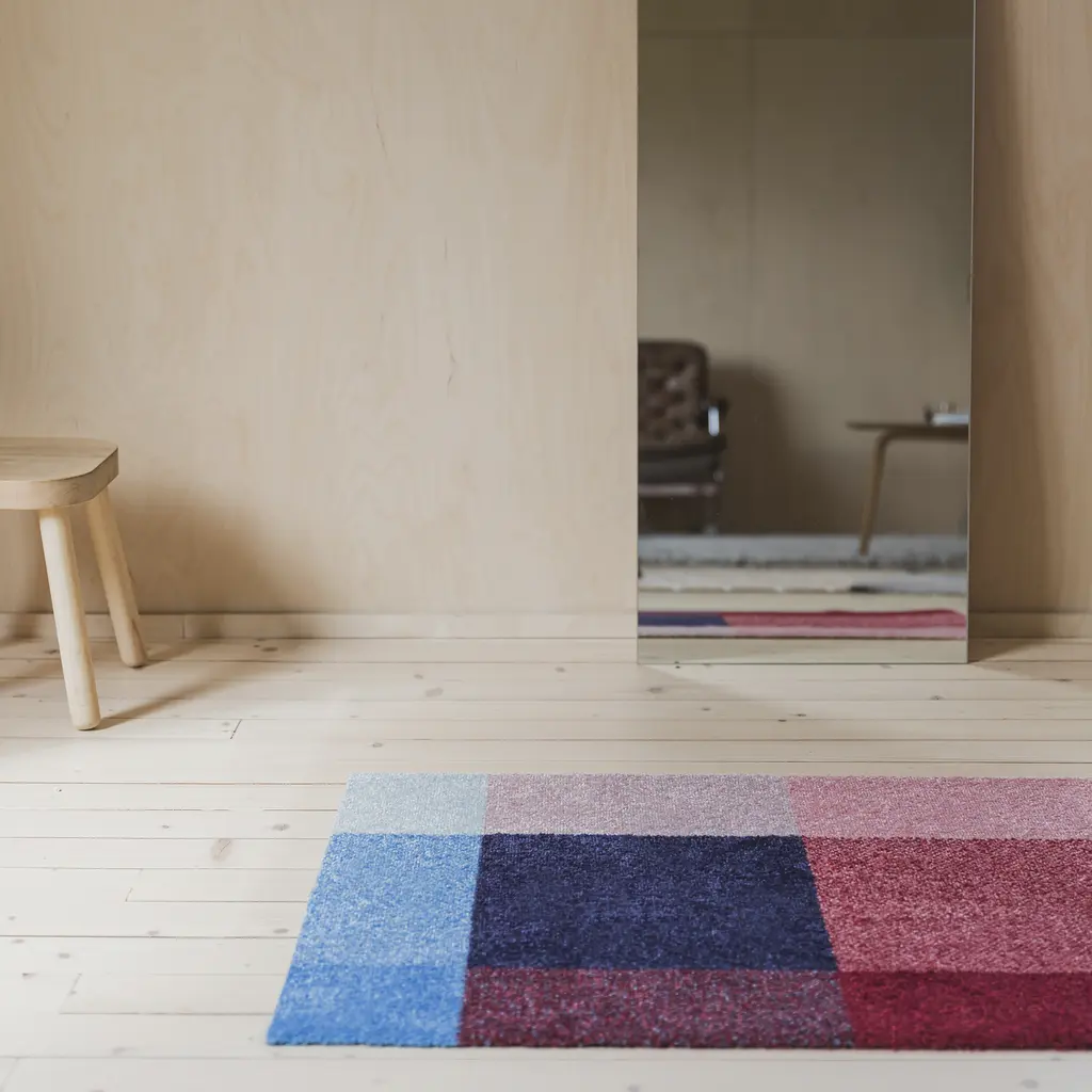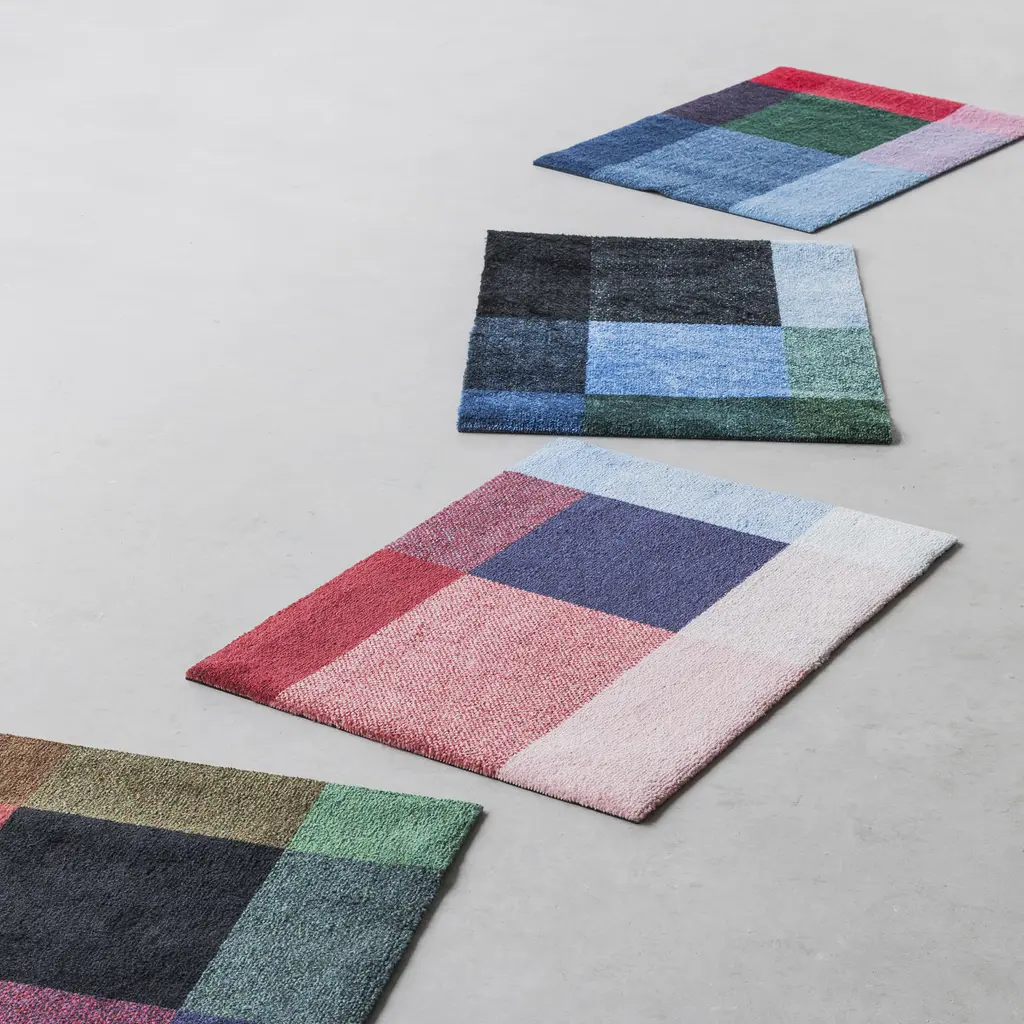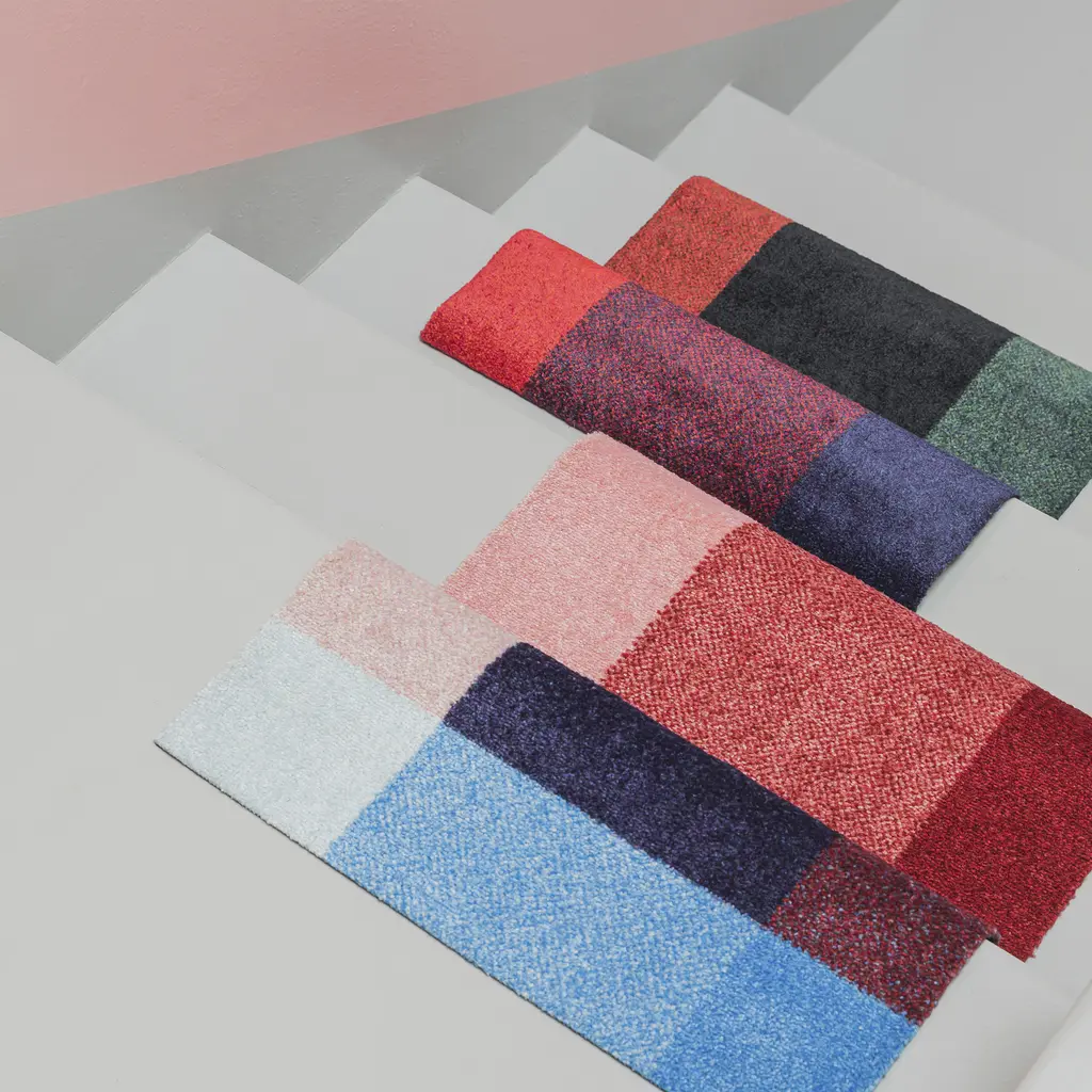 Designed by Kristine Five Melvær for Heymat, the Mix doormat collection features simple rectangular forms in different colors. Over the years, the series grew with another design, created by Tekla Evelina Severin. Giving a nod to 1970s color palettes, the Mediterranean, or Norwegian berries, forests, and meadows, the Mix doormats offer a contemporary take on traditional woven textiles. Each mat boasts rectangular shapes in contrasting and complementing colors. Made for indoor use, the Mix doormats feature a soft textile layer manufactured from 100% recycled materials. While the top layer absorbs moisture and helps trap dust, the rubber backing is non-slip and keeps humidity away from flooring surfaces.
