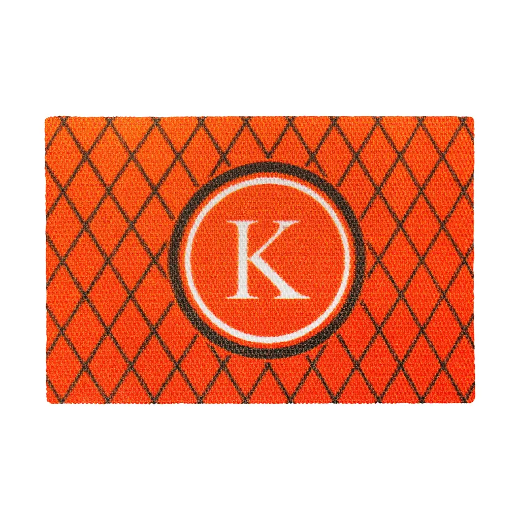 Made of commercial-grade materials, this Monogram Argyle Sisal-Look Doormat won’t shed, fade, mildew or slip. This doormat has the look of sisal without shedding or rotting. It's ideal for any covered doorway or entry area. A single monogram initial gives a personal statement to your front door. Easy care; just shake, vacuum or hose off. You’ll love the upbeat colors and the eco-friendly construction made with recycled plastic and rubber. Low ¼" pile lays flat, fits under doors. Size is approximate. Made in USA.