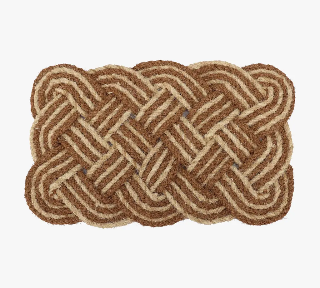 Woven of natural coir, this doormat has nautical appeal with a striped interlocking design reminiscent of a of a sailor’s knot. A beautiful way to greet guests, it adds sophisticated style to your doorstep or entryway.