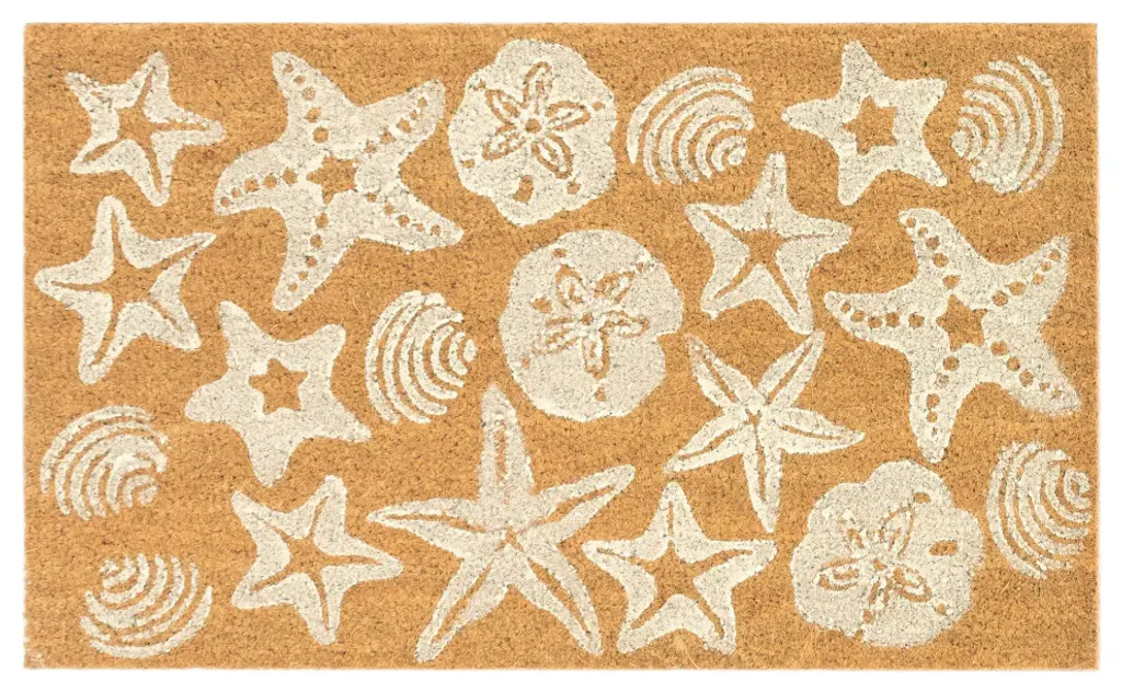 Our Shells mat adds a sophisticated coastal look to your doorstep. This coir utility mat is both stylish and practical. Natura coir doormats are durable and beautiful. Crafted from 100% coir which is an all-natural material known for its strength. Coir is eco-friendly, made from natural fibers which are extracted from the outer shell of a coconut known for its strength and durability. Natura coir mats feature a durable vinyl back and a stiff, durable natural coir front perfect for wiping shoes before entering the home, keeping it tidy. They are available in a wide variety of designs ranging from classic and inspirational to nautical patterns. Dyes saturate the fibers for long-lasting color.