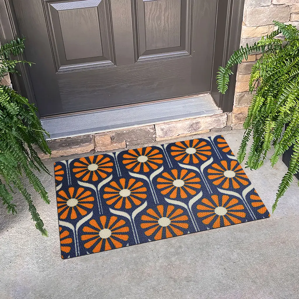 Neighburly Retro Daisies Doormat ,Orange/blue Double Door