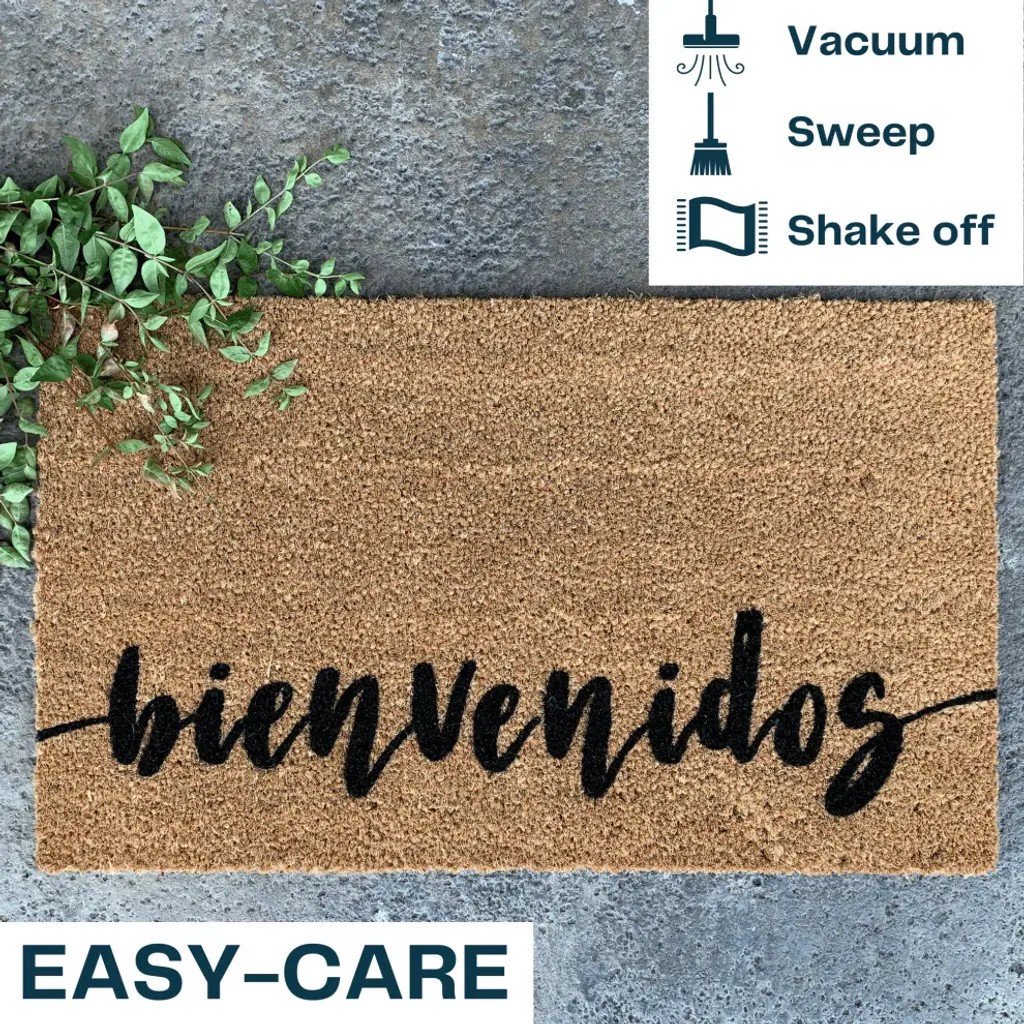 TRENDY DESIGN - Our welcoming design the perfect way to create an inviting and charming entryway or makes a great housewarming gift! It looks good while the durable construction of this doormat helps you keep your clean floors clean. Whether you put it outside or inside, it"™s picture perfect and Instagram ready!⦿ HIGH QUALITY "“ Made from natural coir fibers for mold, mildew resistance. Extra durable, thick vinyl backing keeps the mat in place when used. Permanent paint and UV sealant protects your custom doormat from the elements.⦿ PERFECT SIZE - Standard size, 18 x 30 inches to fit most doors. The perfect entry rug for a warm, bold décor theme. Easy décor update for your porch!Can be used indoor or outdoor to create an inviting, personalized entry way for your home.Easy care "“ sweep or shake to clean.We suggest that you keep your mat as dry as possible to avoid darkening of the fibers.