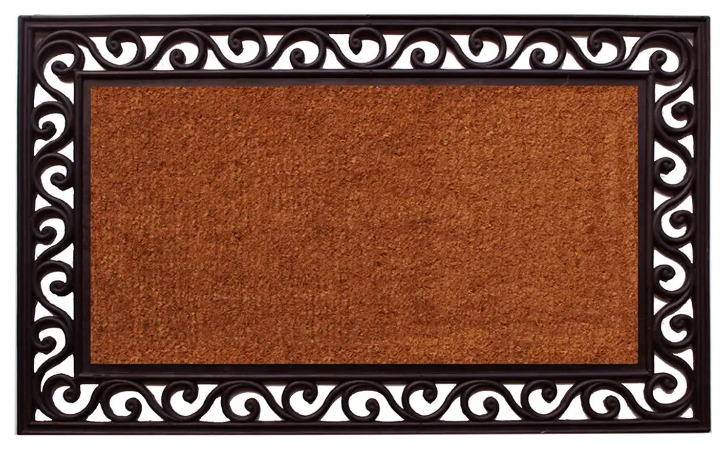 Welcome guests to your home with style with this stripes and scrolls doormat. This mat combines functionality with a touch of sophistication, making it the perfect addition to any doorstep. Its black and brown striped design effortlessly complements a variety of exterior decors, adding a subtle yet eye-catching element to your entryway. Product Features: Brown and black rectangular striped doormat Doormat accented with a decorative scroll and striped pattern Non-skid durable backing which helps to keep your doormat securely in place Recommended for both indoor and outdoor use Care instructions: rinse with a hose and air dry Dimensions: 18"H x 30"W x 0.75"D Material(s): coir/rubber