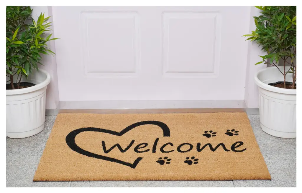 Made of natural coir, a dense fiber that is naturally mold and mildew resistant. Coir is a renewable resource that is durable and coarse, excellent for scraping shoes clean. Vinyl backed for increased durability and to help prevent movement, coir doormats are weather tolerant absorb moisture and retain their shape. For best results keep in a sheltered area such as a covered porch, keeping extreme moisture and sunlight to a minimum. Vacuum, sweep or lightly hose clean.