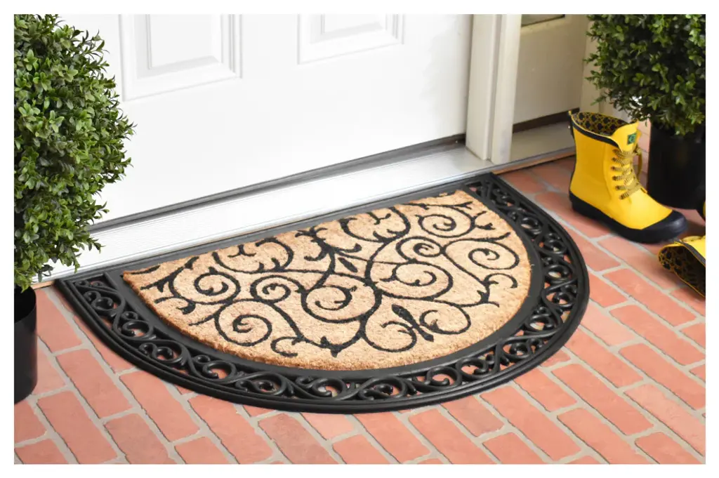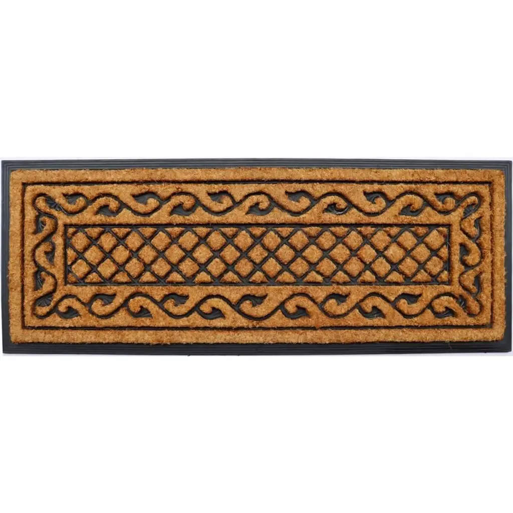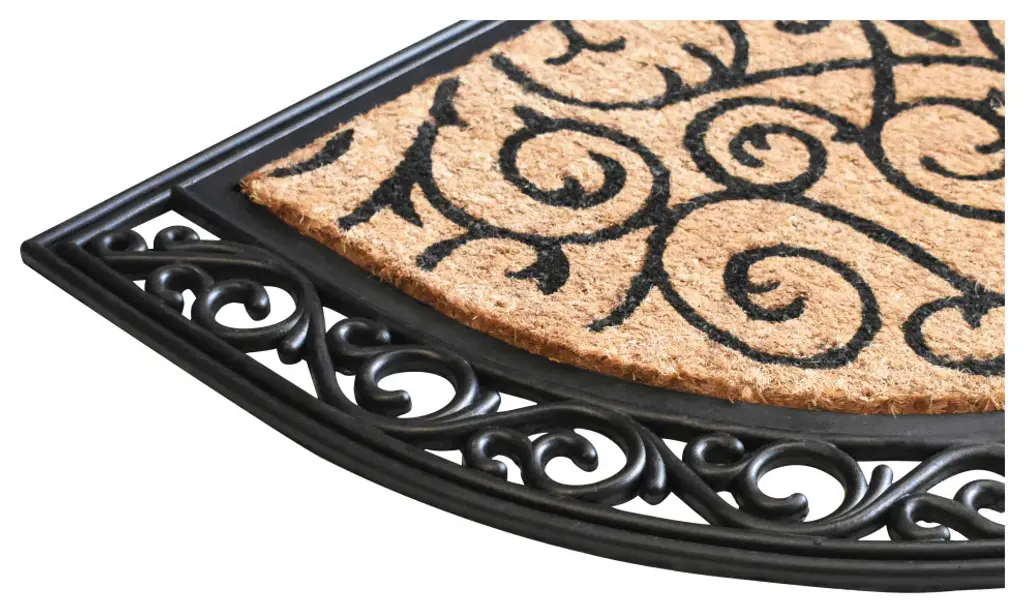 Over-sized to provide more coverage, this beautiful combination of coir and rubber make a stylish, yet durable reception for your guests. While the heavy-duty rubber adds weight and elegance, the coir acts as a natural scraper on shoes to keep debris from entering your home. Sweep or hose clean.