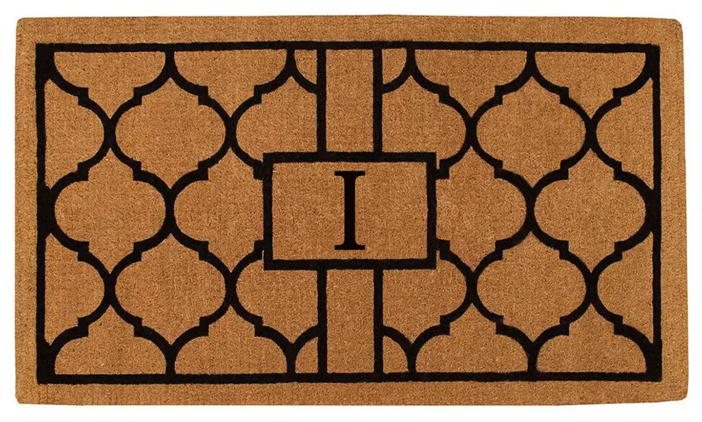 Over-sized for larger areas, this gorgeous monogrammed doormat is expertly made by hand. Made of 100% coir, this durable, heavy-duty fiber is earth friendly, naturally abrasive to scrape shoes clean, retains its shape no matter the foot traffic and absorbs moisture. Height is 1"-2". vacuum, sweep or lightly hose clean.