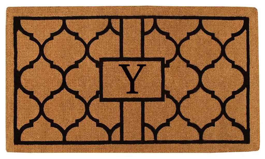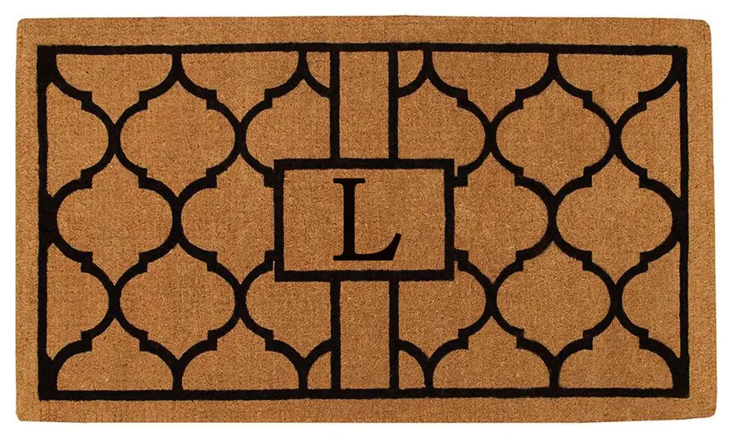 Grand luxury for large entries, this dramatic monogrammed doormat is expertly made by hand. Made of 100% coir, this durable, heavy-duty fiber is earth friendly, naturally abrasive to scrape shoes clean, retains its shape no matter the foot traffic and absorbs moisture. Height is 1"-2". vacuum, sweep or lightly hose clean.