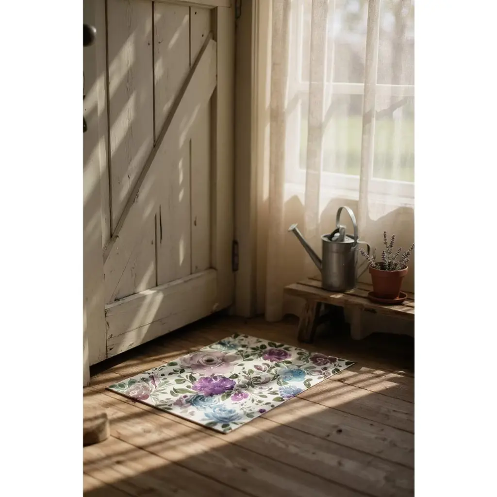 Welcome guests with a burst of floral elegance using the Blooming Blossoms Doormat. This exquisite mat combines beauty and functionality, featuring a vibrant botanical pattern achieved through cutting-edge dye-print technology. The durable polyester surface stands up to the elements, while the non-skid recycled rubber backing ensures safety and stability, making it ideal for outdoor use. Personalize your entryway with this charming doormat, perfect for adding a personal touch to your front porch or patio. Measuring approximately 18"H x 27"W, it fits snugly at your doorstep. Maintain its fresh look by hosing off with water and mild soap, and let it air dry to preserve the intricate floral design. Enhance your home’s curb appeal and make a delightful first impression with this standout piece.
