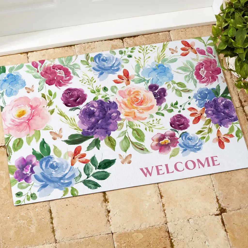 Personalization Mall Blooming Blossoms Welcome Doormat, 18x27