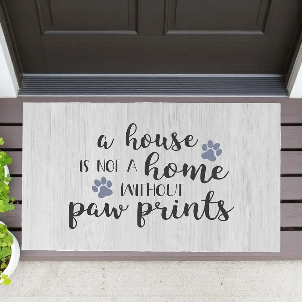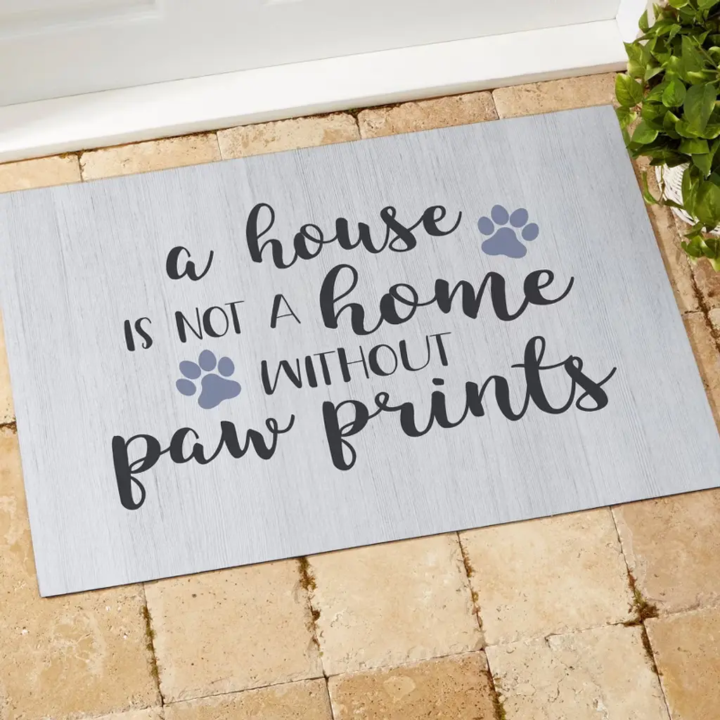 Welcome your guests and celebrate your love for furry friends with the Pet Home Doormat. Designed to make a lasting impression, this doormat showcases an endearing paw print pattern that adds charm and warmth to any entryway. Crafted with a sturdy polyester surface, it withstands the elements while providing a vibrant, fade-resistant design thanks to advanced dye-print technology.Featuring a non-skid recycled rubber backing, this doormat stays securely in place, offering safety and stability at your doorstep. It's perfect for outdoor use, ideally placed under a covered area to maintain its vivid appeal. Measuring approximately 18"H x 27"W, this standard size doormat fits seamlessly at your entryway, enhancing your home's curb appeal.Easy to maintain, this mat can be cleaned with a hose or sponge using water and mild soap—just air dry to preserve its delightful pattern. Elevate your home's entrance and make every guest feel special with this charming doormat, a must-have for pet lovers who want to express their unique style.