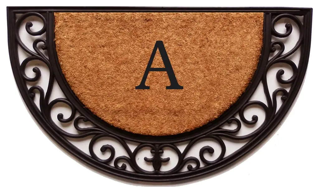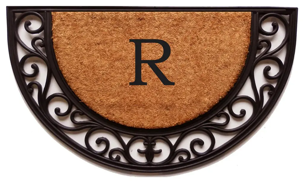 The beautiful combination of coir and rubber in this arch doormat make an attractive, yet durable reception for your guests. Heavy-duty rubber adds weight to this elegant monogrammed mat while the coir absorbs moisture and acts as a natural scraper on shoes. Weather tolerant and colorfast, this doormat can be easily maintained by vacuuming, sweeping or lightly hosing clean and allowing to dry.