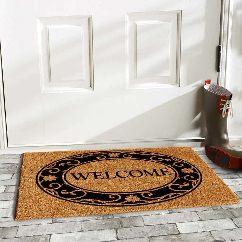 Made of natural coir, a dense fiber that is naturally mold and mildew resistant. Coir is a renewable resource that is durable and coarse, excellent for scraping shoes clean. Vinyl backed for increased durability and to help prevent movement, coir doormats are weather tolerant absorb moisture and retain their shape. For best results keep in a sheltered area such as a covered porch, keeping extreme moisture and sunlight to a minimum. Vacuum, sweep or lightly hose clean.