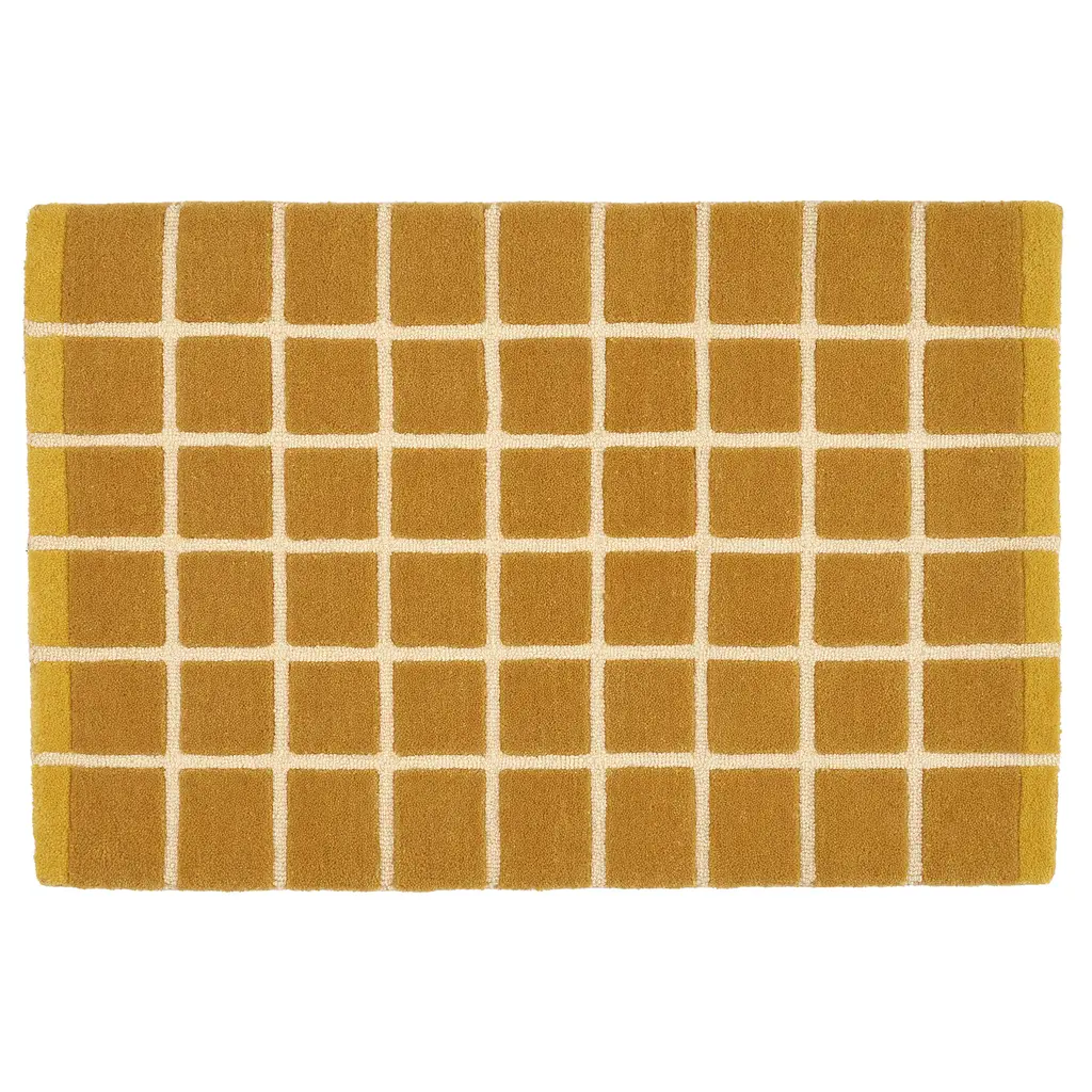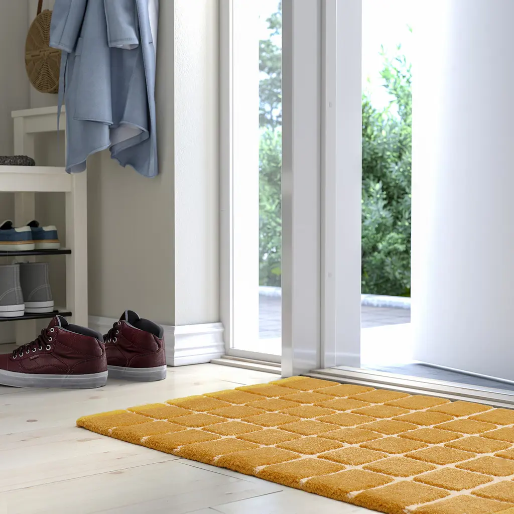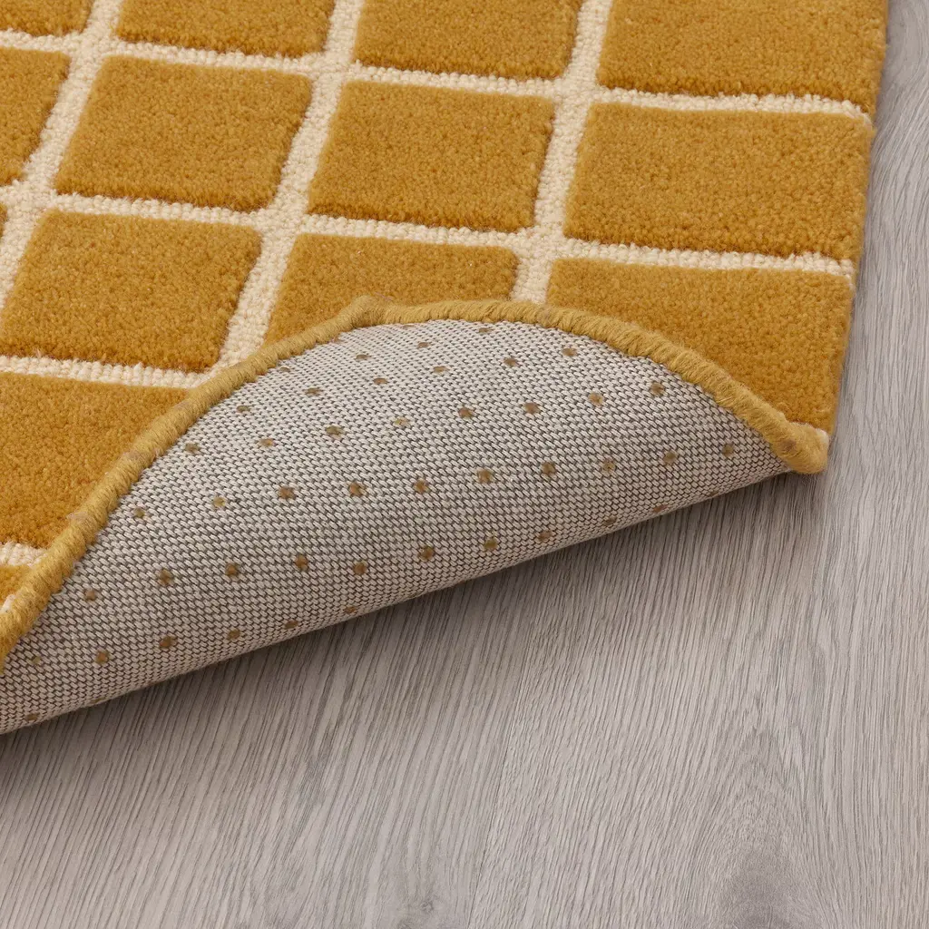POSTKONTOR Door mat, indoor - yellow 2 ' 0 "x2 ' 11 ". Welcoming door mat that catches grit and dirt. Hand tufted by skilled craftspeople. The wool is naturally soil-repellent and durable. The backing keeps the door mat firmly in place. Only for indoor use.