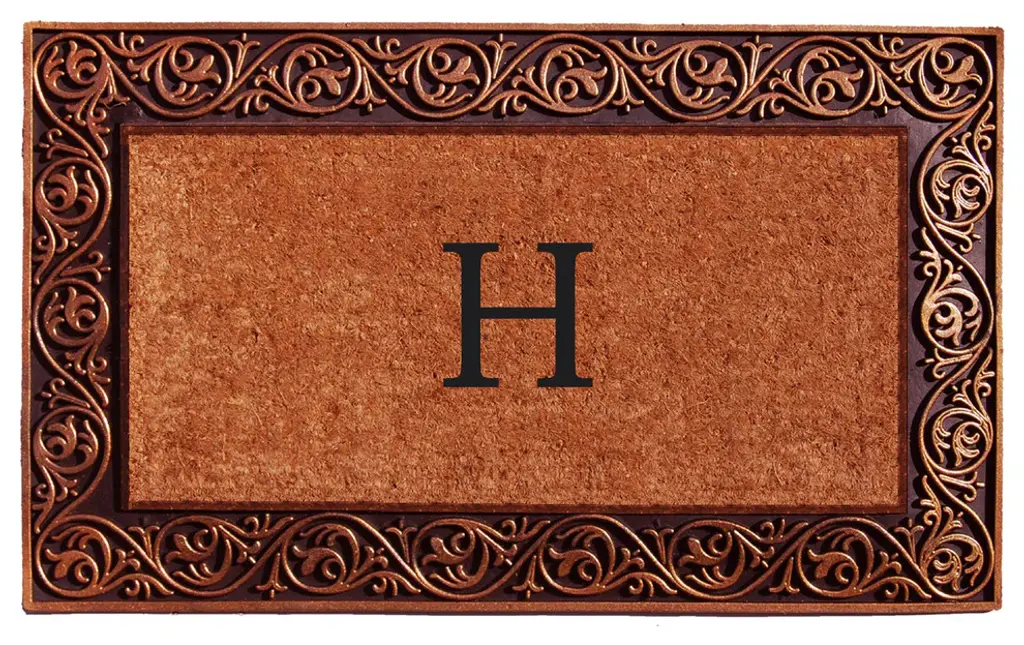 Durable and so impressive, this monogrammed doormat makes a beautiful addition to any home entryway. Made of heavy-duty bronze rubber and natural coir that scrapes shoes clean and absorbs moisture. Vacuum, sweep or lightly hose clean and allow to dry.