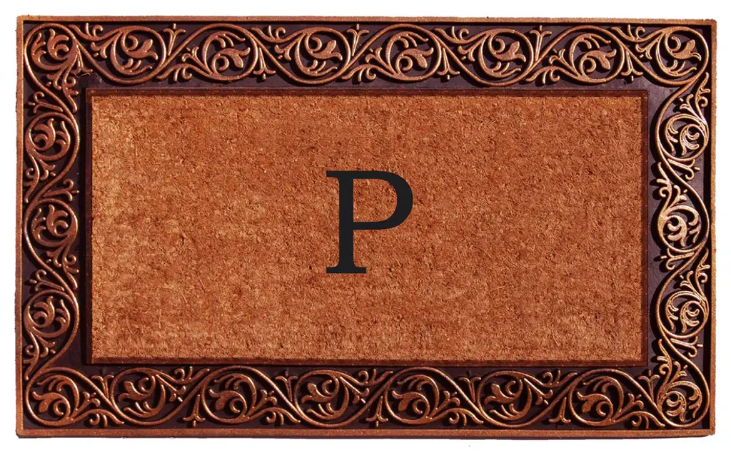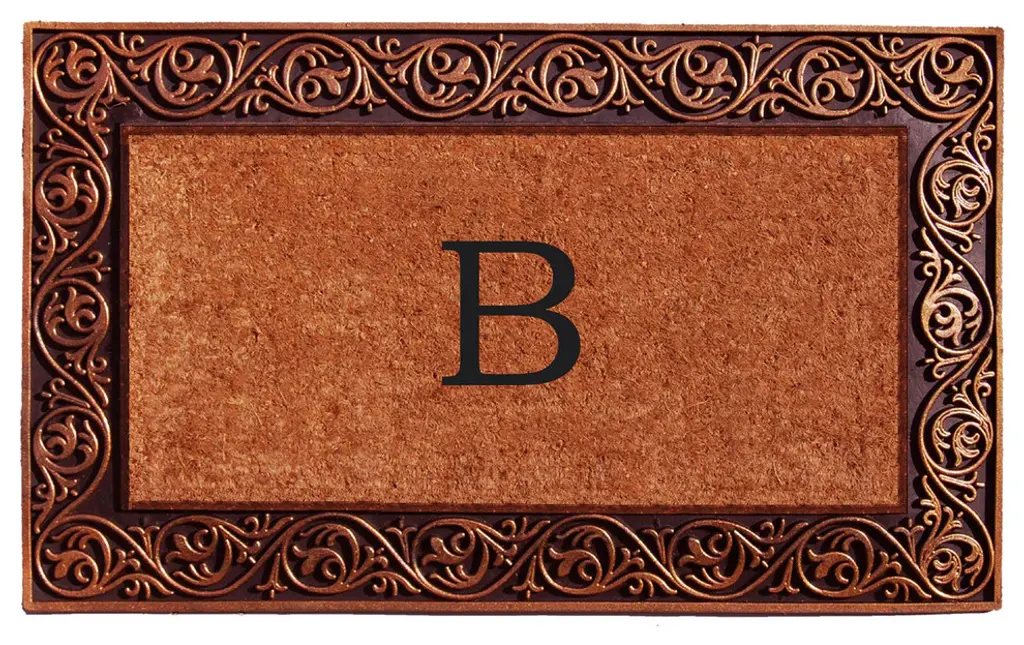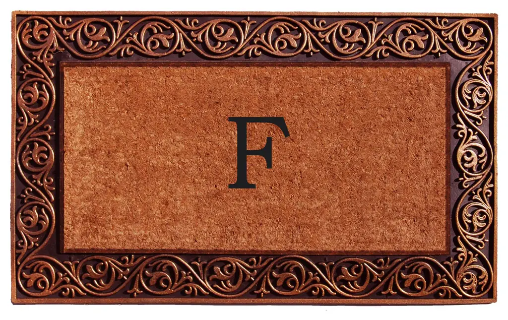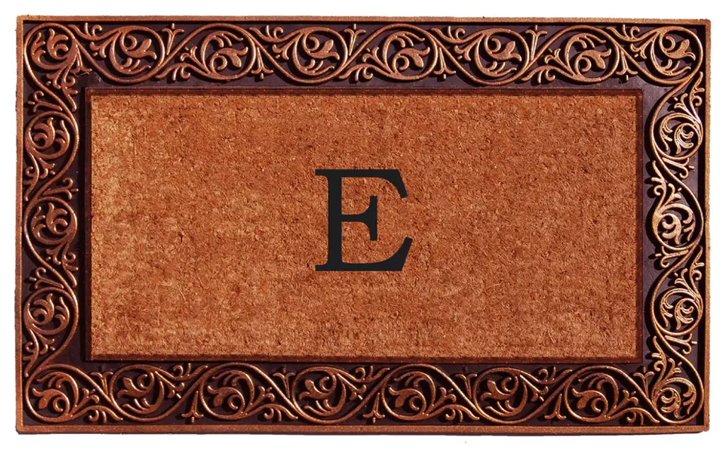 Durable and so impressive, this monogrammed doormat makes a beautiful addition to any home entryway. Made of heavy-duty bronze rubber and natural coir that scrapes shoes clean and absorbs moisture. Vacuum, sweep or lightly hose clean and allow to dry.