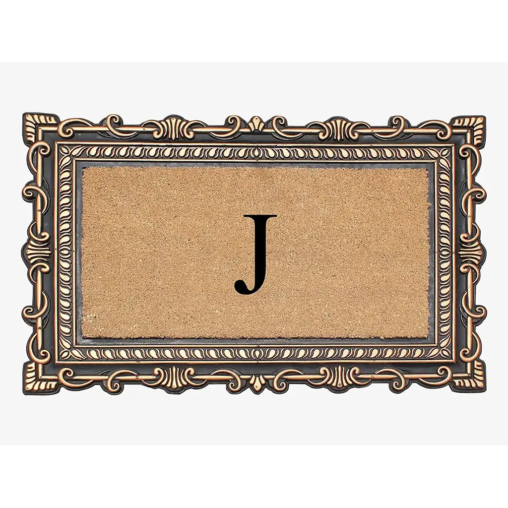 Durable and so impressive, this monogrammed doormat makes a beautiful addition to any home entryway. Made of heavy-duty gold rubber and natural coir that scrapes shoes clean and absorbs moisture. Vacuum, sweep or lightly hose clean and allow to dry.