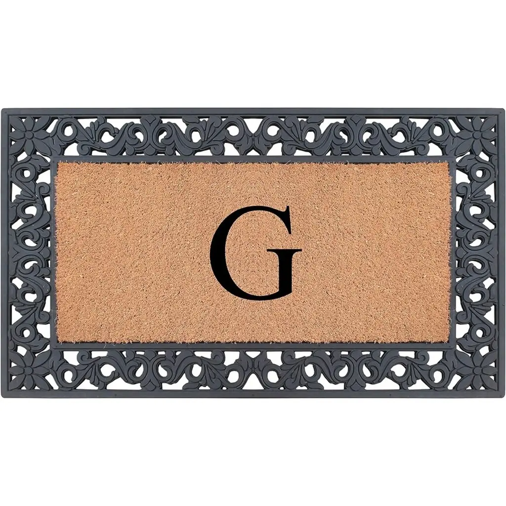 Durable and so impressive, this monogrammed doormat makes a beautiful addition to any home entryway. Made of heavy-duty silver rubber and natural coir that scrapes shoes clean and absorbs moisture. Vacuum, sweep or lightly hose clean and allow to dry.
