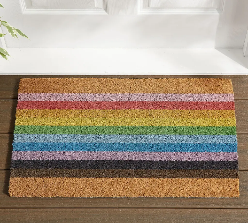 Love all, welcome all with our Pride Doormat. Woven of thick and durable natural coir, it’s decorated with a rainbow of bright, cheerful stripes. When you shop this exclusive collection, 25% of the purchase price will directly benefit The Trevor Project.