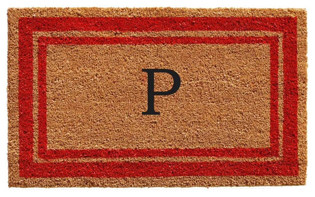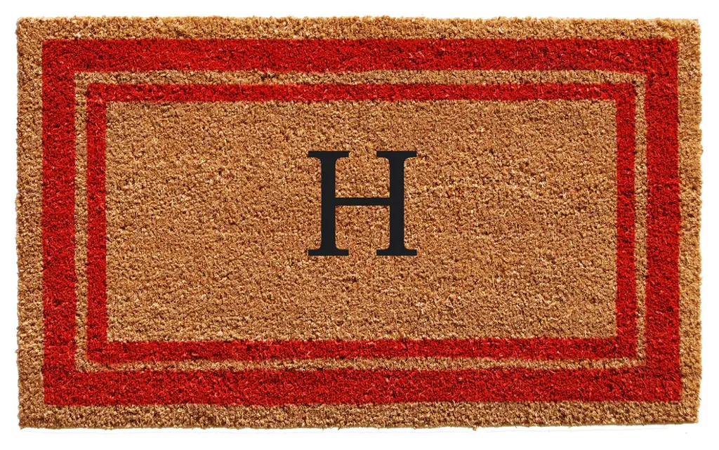 Brighten your home entry with this beautiful monogrammed doormat. Made of natural coir, a durable fiber that scrapes shoe bottoms clean, this doormat has a prominent double border that encases your initial and is vinyl backed to help prevent movement when walked on. Weather tolerant and colorfast, coir doormats absorb moisture, retain their shape and do not mat down regardless of the traffic. Vacuum, shake or lightly hose clean and allow to dry.