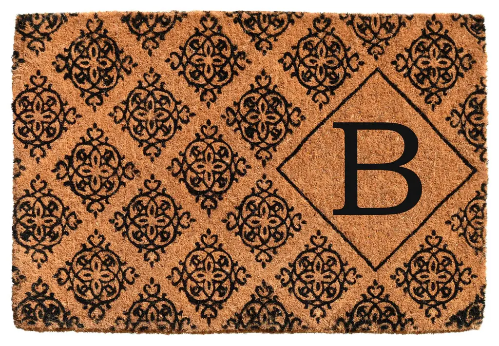 Welcome your guests with this gorgeous monogrammed doormat that is expertly made by hand. Made of 100% coir, this durable, heavy-duty fiber is earth friendly, naturally abrasive to scrape shoes clean, retains its shape no matter the foot traffic and absorbs moisture. Height is 1.5" -2", vacuum, sweep or lightly hose clean.